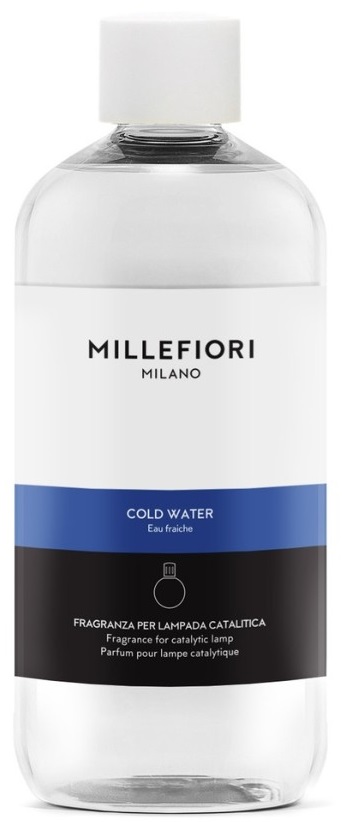 Náplň do katalytické lampy Millefiori MILANO s vůní COLD WATER. Láhev oleje určená speciálně pro katalytické lampy. Svěží tóny santalového dřeva, rozmarýnu, citronu a bergamotu.