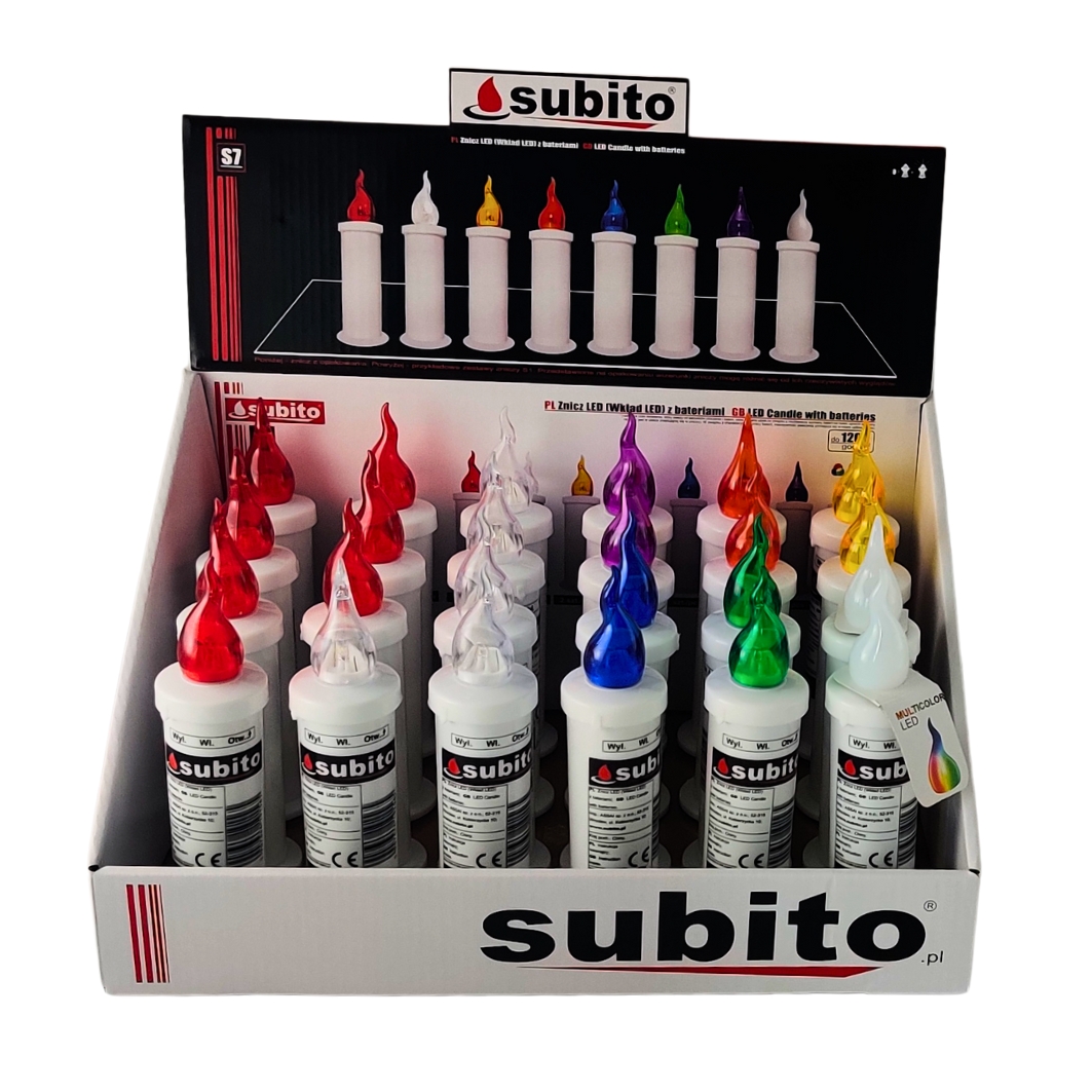 Klasické LED svíčkové vložky od Subito , napájené bateriemi R6, pasují na většinu skleněných a plastových svíček, stejně jako na různé typy svíček a luceren. Tyto LED vložky poskytují příjemné světlo a široká škála barev umožňuje vytvářet zajímavé iluminace.