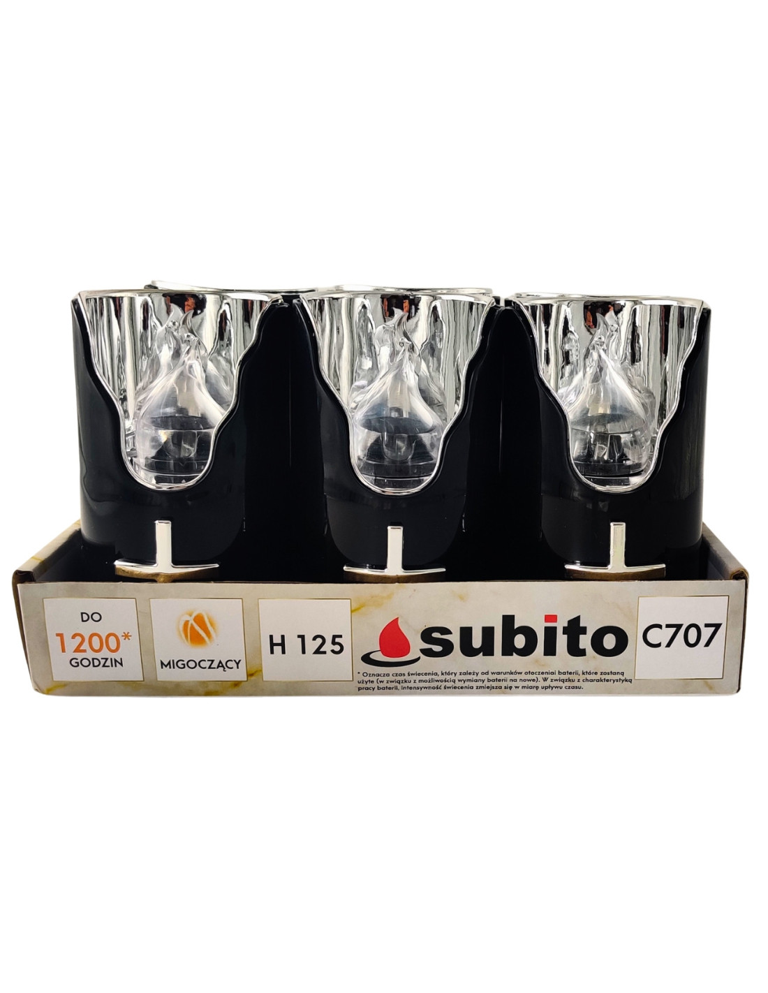 Dekorativní svíčková vložka na baterie. Hodí se do většiny skleněných nebo plastových svíček. Vydává příjemné světlo a široký výběr barev umožňuje vytvořit zajímavé osvětlení. Stříbrné akcenty jí dodávají exkluzivní vzhled.
