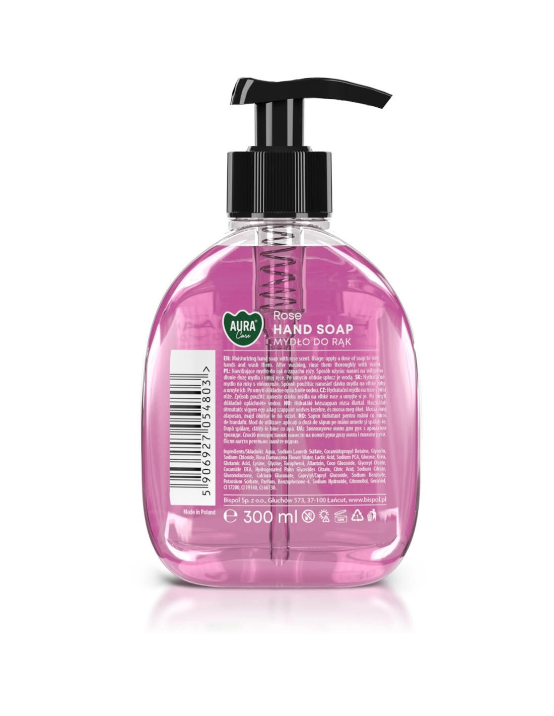 Hydratační vonné tekuté mýdlo od AURA s vůní růže, jejíž jemná květinová vůně zahalí pokožku do jemnosti a svěžesti. Mýdlo jemně čistí, zanechává pokožku jemnou a hedvábně jemnou na dotek a hydrolát damašské růže v něm obsažený dodává pokožce efekt osvěžení a pocit relaxace při každé aplikaci.