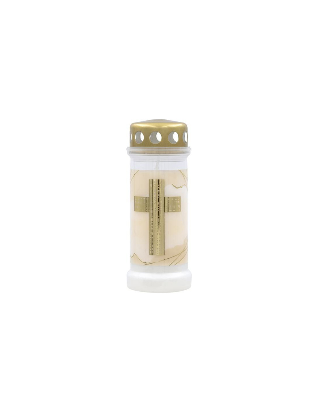 Plněné plastové svíčky ve zlatém stylu značky BOLSIUS . Grafika s třpytivým zlatým křížem je kombinací moderního designu a klasické, posvátné symboliky. Pevná široká základna zajišťuje stabilitu a silný kvalitní plast zaručuje trvanlivost a odolnost vůči povětrnostním vlivům. Kovové, zlaté víčko dodává rafinovaný charakter, zdůrazňující eleganci celku a vosk bez přidaného palmového oleje dělá ze svíčky ekologickou volbu. Lze ji použít jako samostatnou svíčku nebo jako vložku do větších skleněných luceren či lucerniček. Je to vynikající volba pro lidi, kteří oceňují estetiku, odolnost a hlubokou symboliku.