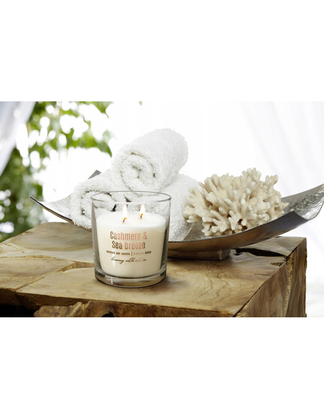 Víčko svíčky je vyrobeno z kaučukového dřeva, zapadá do ekologického designu, chrání povrch před nečistotami a lze jej použít jako elegantní stojánek. Dva bavlněné knoty zajišťují rovnoměrné hoření vosku. Baleno v elegantní krabičce, ideální jako dárek.