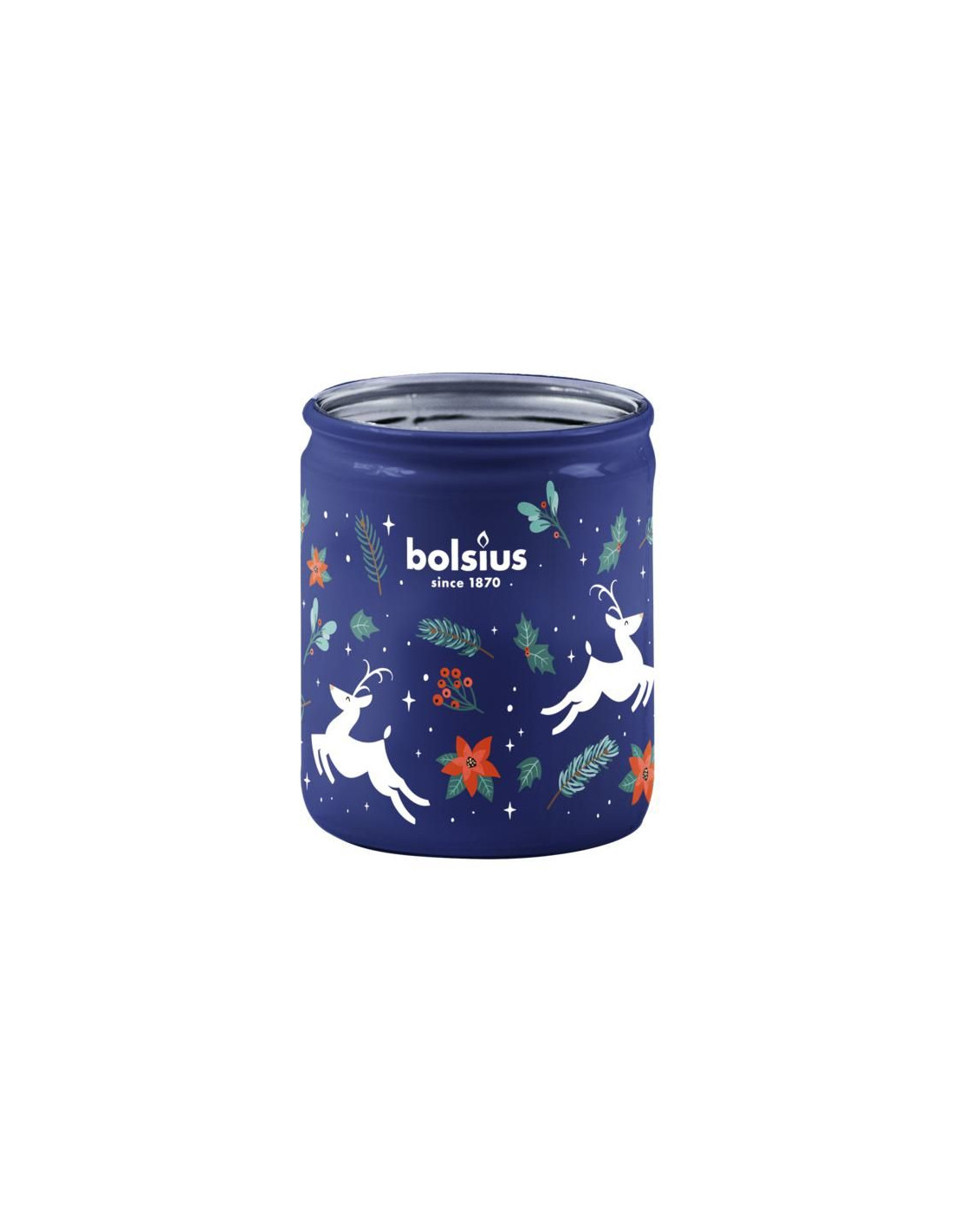 Vánoční svíčka Bolsius v modré barvě s vanilkovou vůní vytváří útulnou atmosféru pro zimní večery – ideální jako dekorace nebo vánoční dárek.