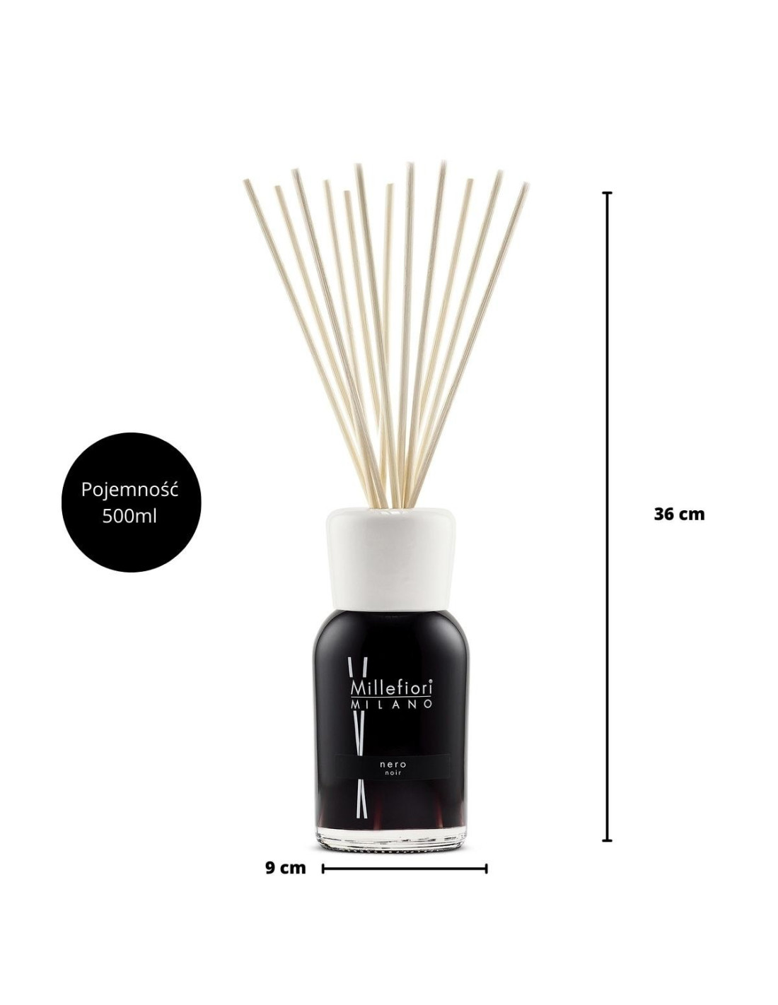 Dieser große Diffusor mit Rattanstäbchen von Millefiori MILANO verströmt den Duft NERO. Holzige Aromen kombiniert mit Zimt, Patschuli und Vanille eignen sich perfekt für Wohnzimmer, Schlafzimmer oder Büros und verleihen jedem Raum Eleganz und Frische.