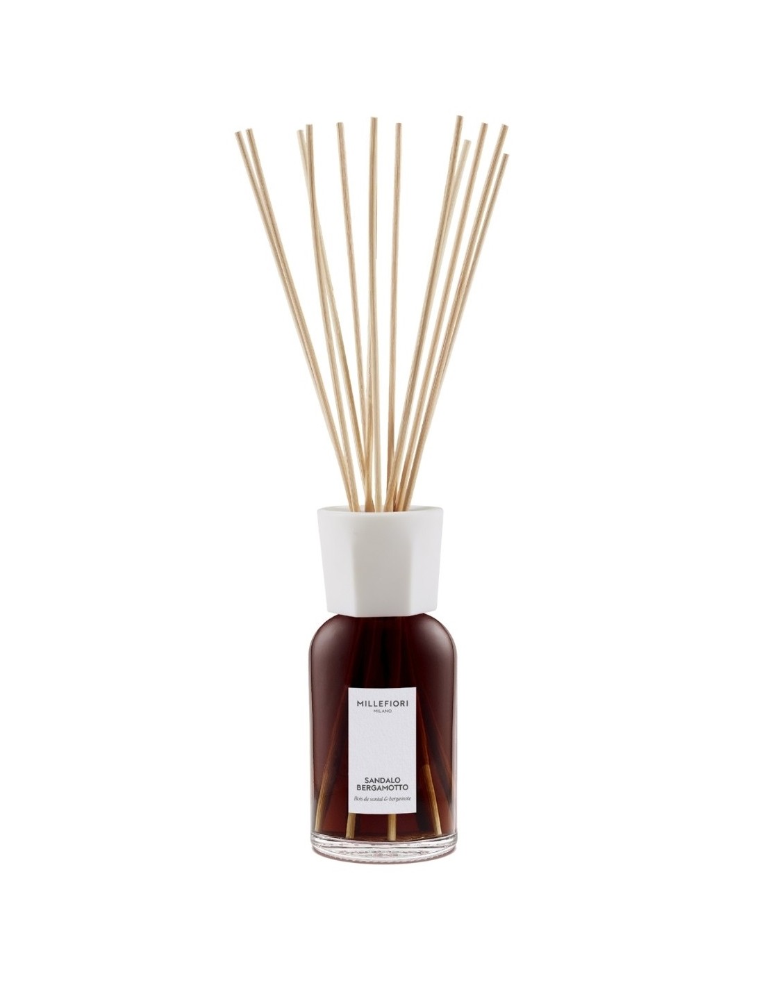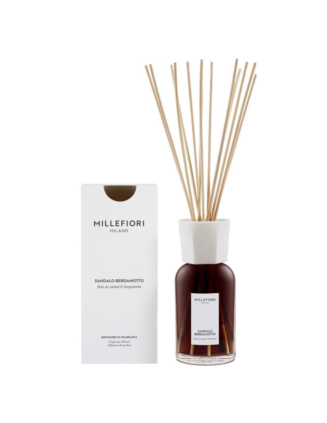 Dieser große Diffusor mit Rattanstäbchen von Millefiori MILANO verströmt den Duft von SANDALO BERGAMOTTO. Das holzige Aroma von Sandelholz, kombiniert mit einem Hauch von Zitrusfrüchten und Lavendel, eignet sich perfekt für Wohnzimmer, Schlafzimmer oder Büros und verleiht jedem Raum Eleganz und Frische.