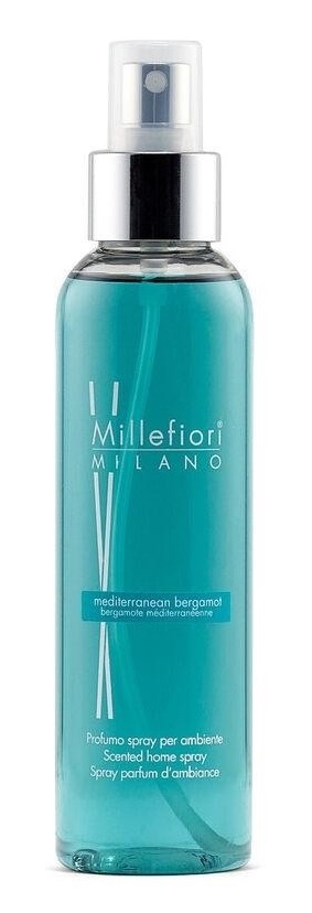 Millefiori MILANO Raumspray mit dem Duft MEDITERRANER BERGAMOTTE. Mediterrane Bergamotte, aufgelockert mit einem Hauch von Zitrone und rosa Grapefruit, eignet sich perfekt für Wohnzimmer, Schlafzimmer, Bad oder Büro und verleiht dem Interieur Eleganz und Frische.