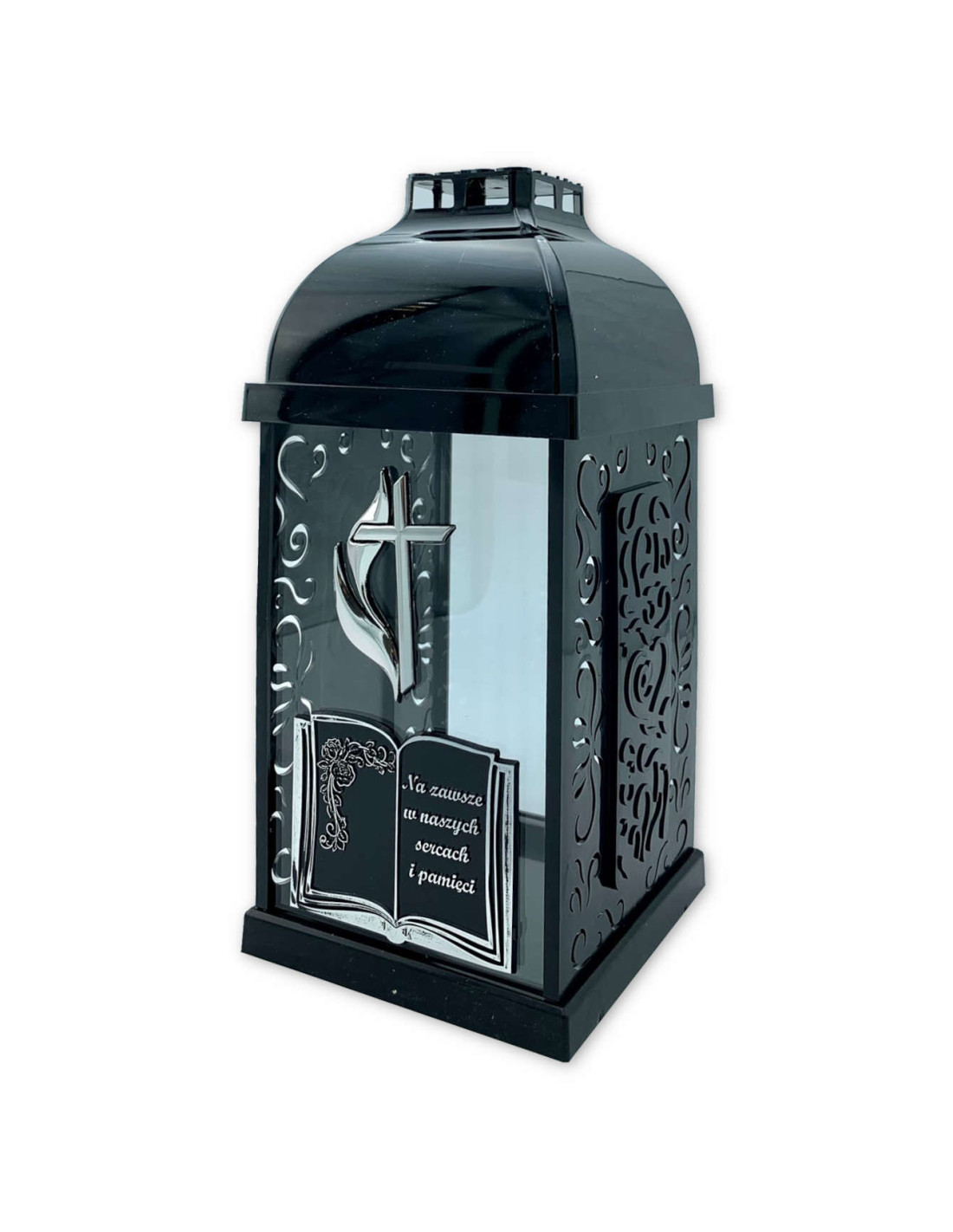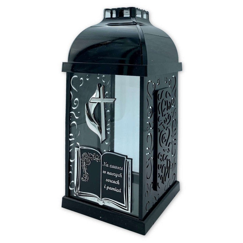 FERMO kleine Buchschreinkerze - Kreuz/Flamme schwarz/silber 29cm