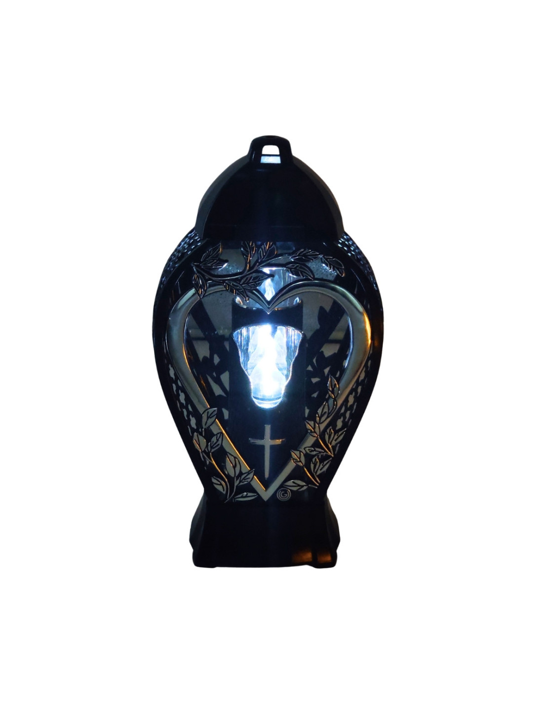Die elegante Kerze „GLAMUR Large Openwork Vase“ besticht durch ein dezentes silbernes Herzmotiv in schwarzem Finish. Langlebig, stabil und wetterbeständig – die perfekte Grabsteindekoration, um die Erinnerung an geliebte Menschen zu ehren.