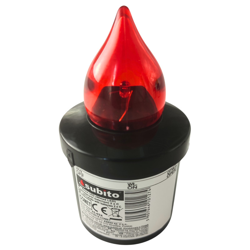 Klassischer LED-Einsatz für Subito- Kerzen, betrieben mit R14-Batterien. Passend für die meisten Kerzen aus Glas und Kunststoff oder verschiedene Arten von Schreinen und Laternen. Der LED-Einsatz sorgt für angenehmes Licht und durch die große Farbauswahl können Sie interessante Illuminationen kreieren.