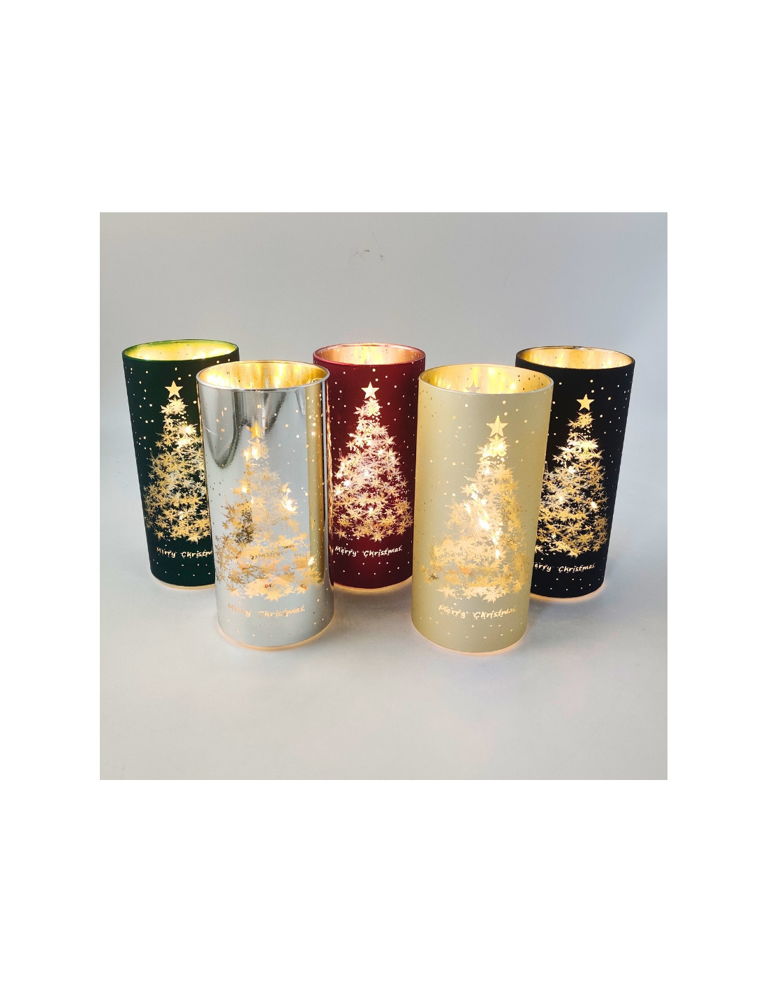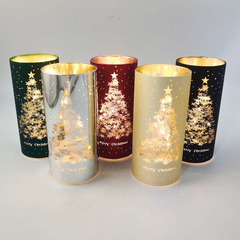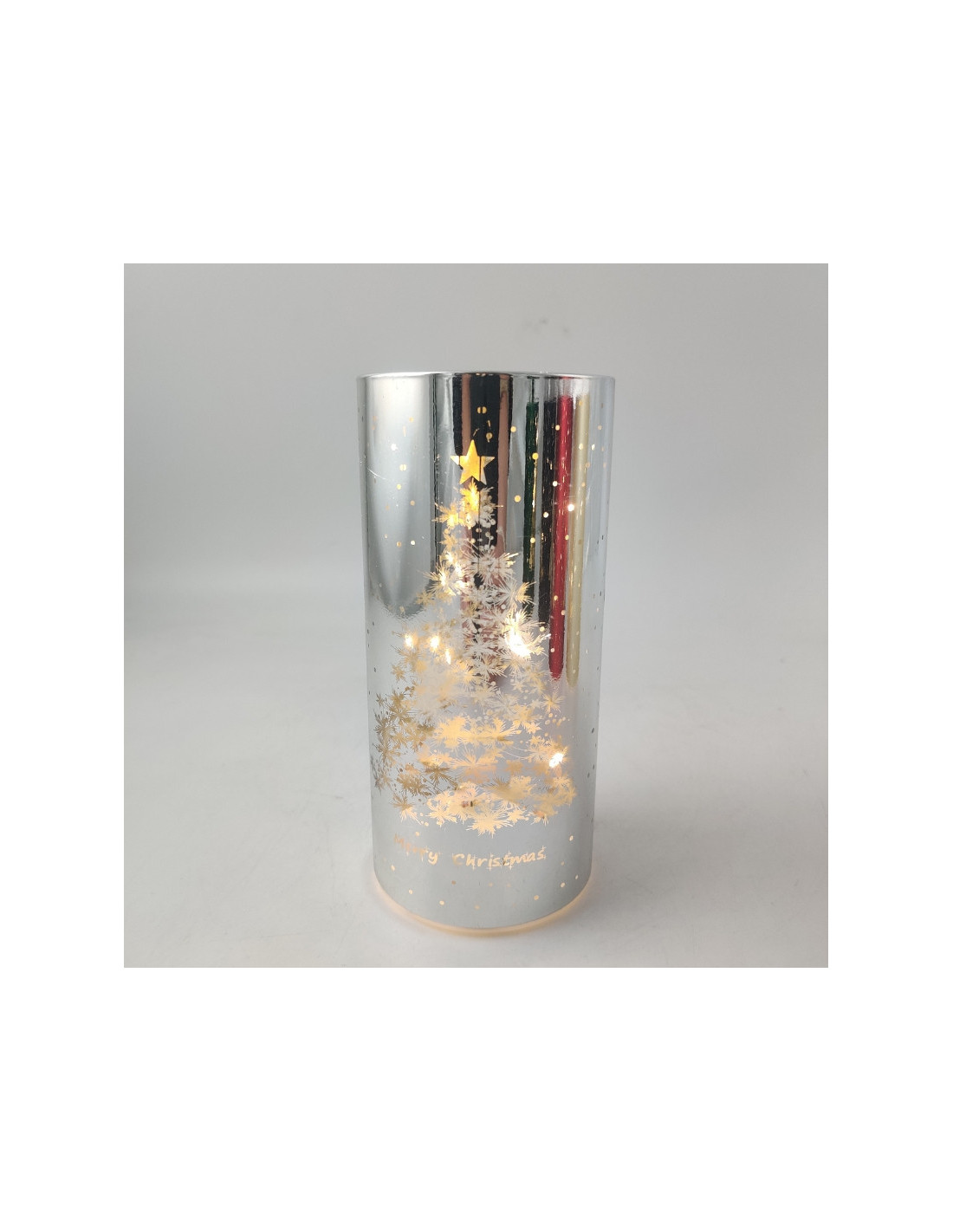 LED-Kerze in einer Röhre mit Weihnachtsbaummotiv
