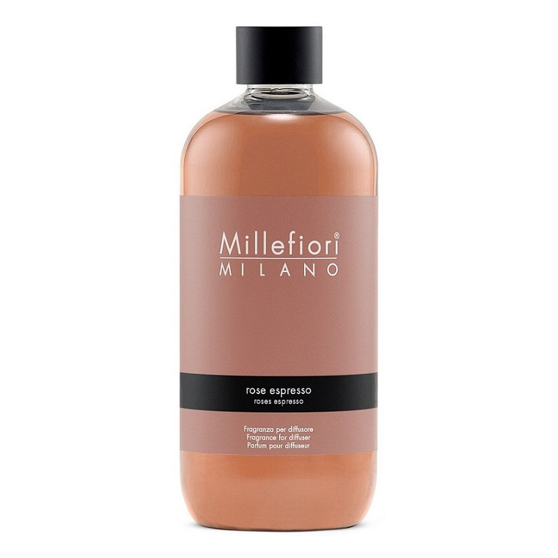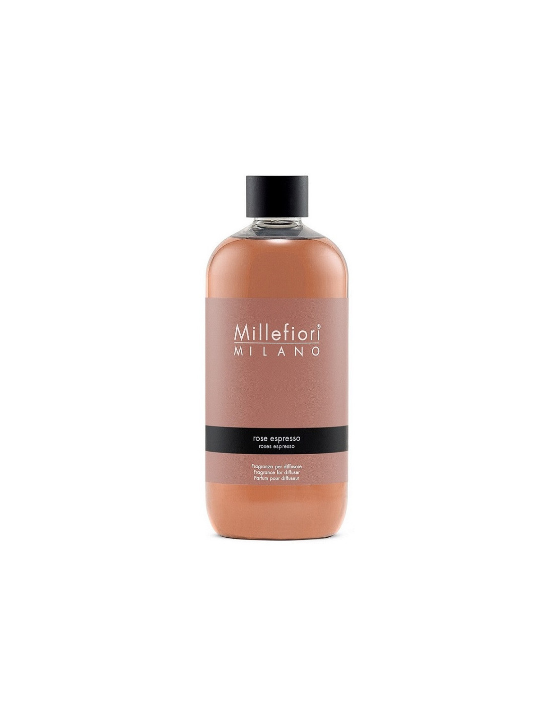 Uzupełniacz do pałeczek zapachowych marki Millefiori MILANO o aromacie ROSE ESPRESSO. Butelka z olejkiem przeznaczonym specjalnie do dyfuzorów z patyczkami. Aromat białych kwiatów złączony z nutą świeżo mielonej kawy dopełniony płatkami róż i wanilii doskonale sprawdzi się w salonie, sypialni czy biurze, dodając wnętrzu elegancji i świeżości.