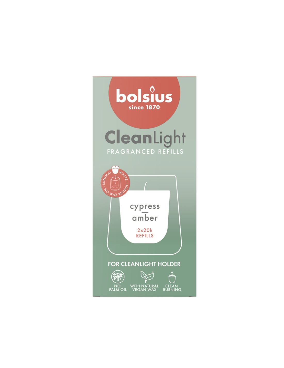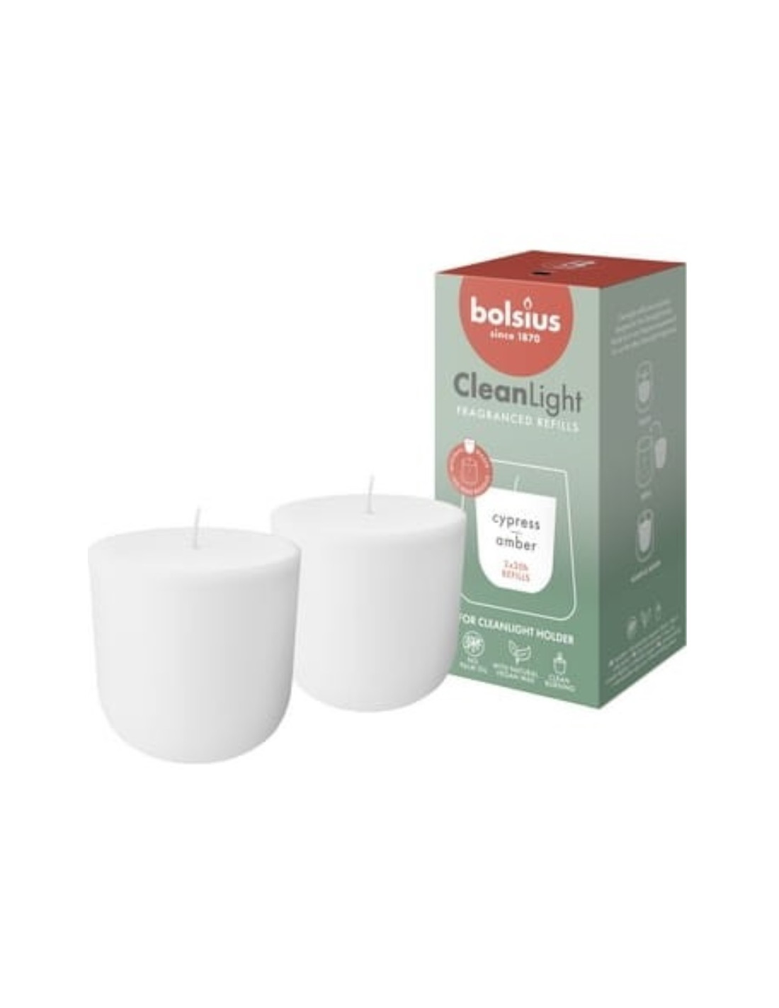 Bolsius Clean Light scented refill candles offer approximately 20 hours of burn time, ensuring a clean, stain-free burn. Their versatile white wax and matching diameter make them a perfect match for the candle holders in this collection.