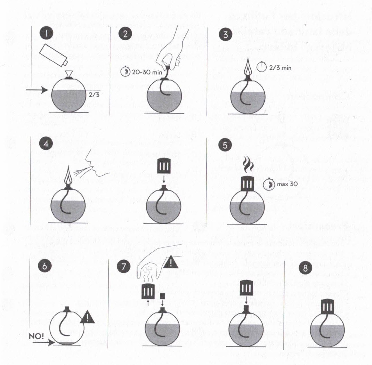 3) Light the catalytic stone and let it burn for 2/3 minutes. BE CAREFUL Do not leave a burning lamp unattended.