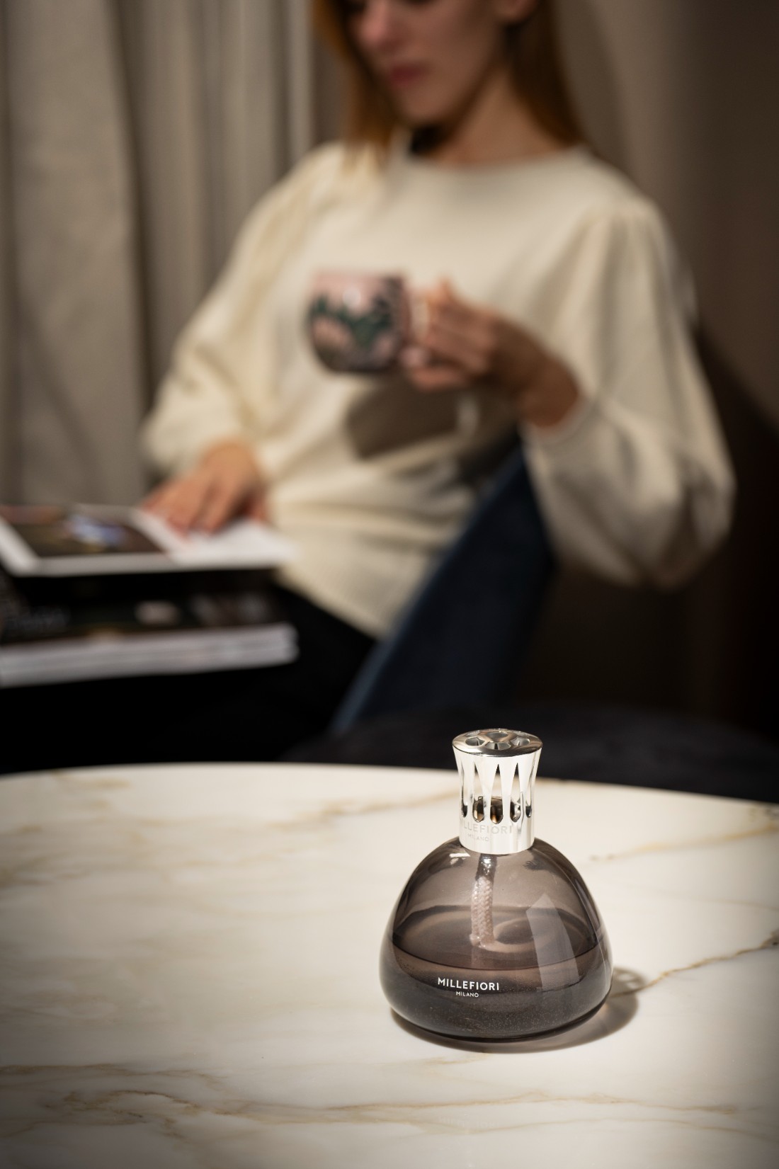 The Millefiori MILANO catalytic lamp is a unique way to introduce a sophisticated atmosphere to your interior. Made of gray, smoked glass, it creates an elegant visual accent, and the possibility of using any essential oils in it allows you to enjoy your favorite scent in a unique, stylish setting.