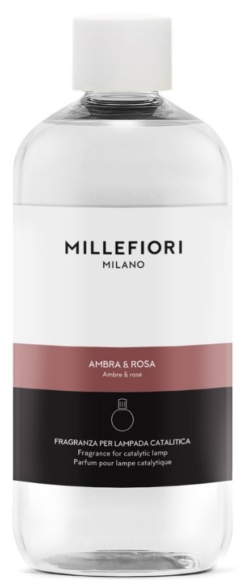 Refill for the Millefiori MILANO catalytic lamp with the scent of AMBRA & ROSA. A bottle with oil designed specifically for catalytic lamps. The ethereal aroma of rose petals combines with the sweetness of orange and a hint of musk.