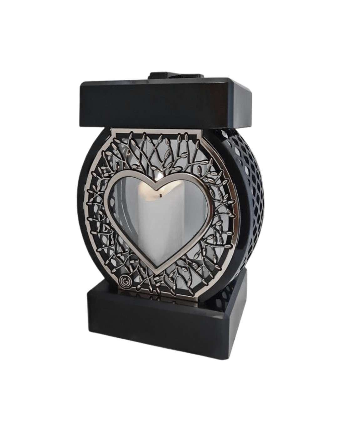 GLAS HITThe elegant GLAMUR Circle Rattan Large candle features a subtle silver heart motif in a black finish. Durable, stable, and weather-resistant—the perfect gravestone decoration to commemorate loved ones.