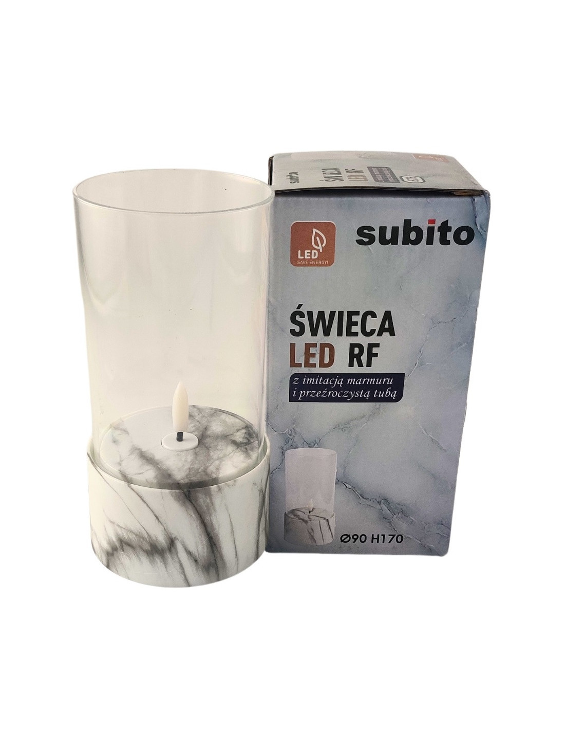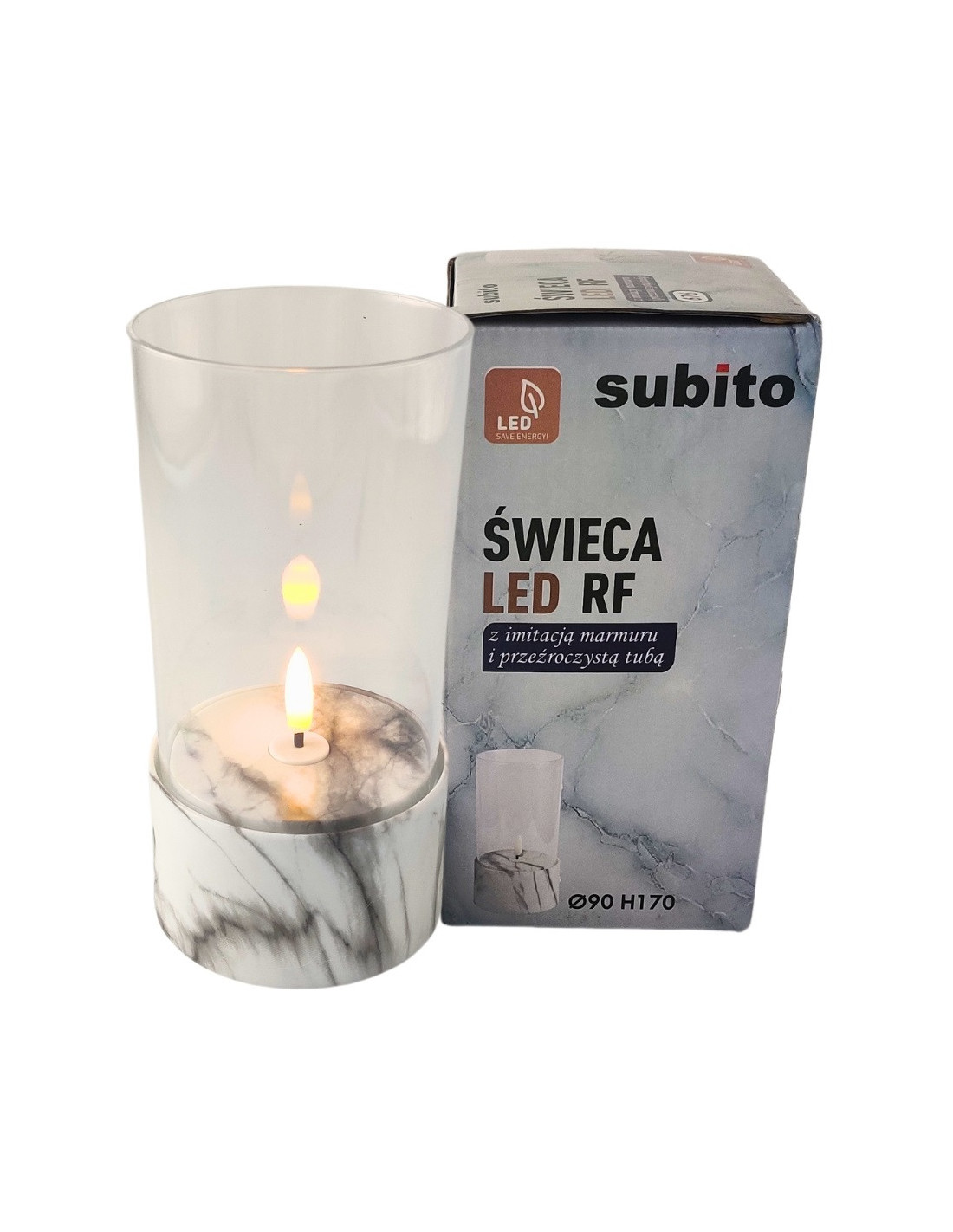The C701 LED candle by SUBITO combines classic beauty with modern functionality. Marble gives the candle an elegant, timeless character, and the transparent tube delicately exposes warm white light that subtly brightens the space. The candle is perfect for lanterns, lanterns or chapels, but it can also be used as a decorative element on the balcony, terrace, at home or during various celebrations.