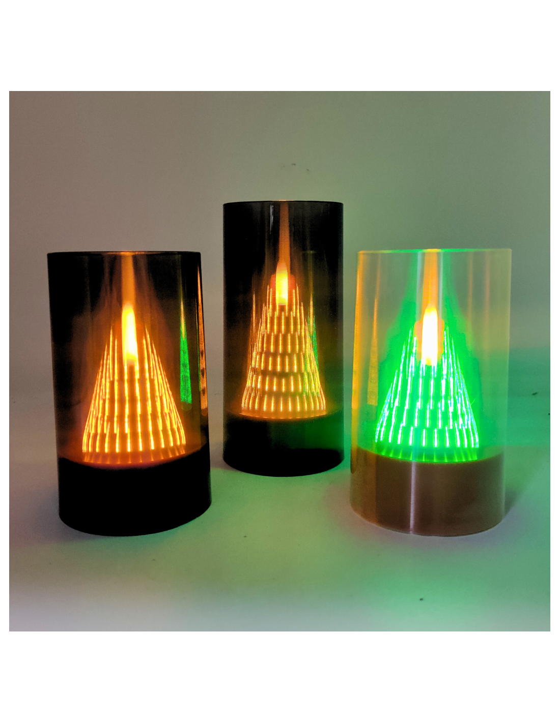 This modern LED candle in an elegant tube is a unique decoration that combines festive charm with practical, safe lighting. Inside, a striking, conical LED Christmas tree creates a shimmering, atmospheric light. This product is perfect as a holiday decoration for your home – on a table, windowsill, or dresser.
