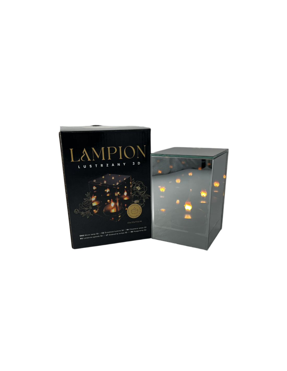 AstekThe 3D Cube mirror lantern with an infinite flame effect is a modern decoration for your home, garden or as a gift.