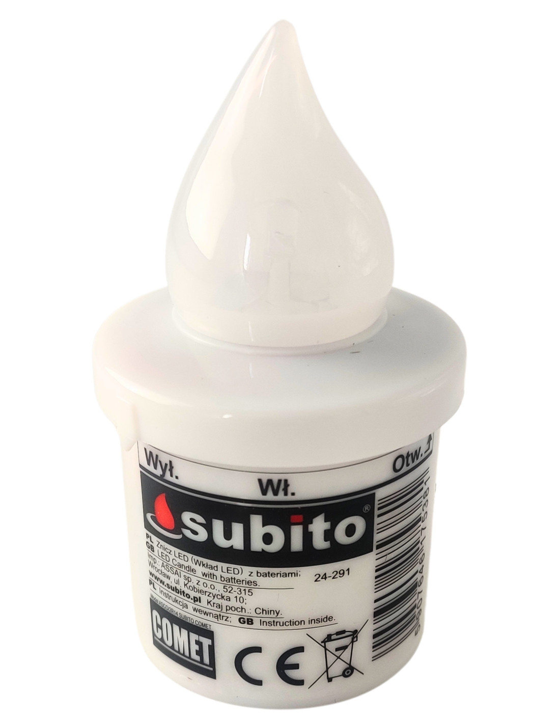 Classic LED insert for candles by Subito powered by R14 batteries. Fits most glass, plastic candles or various types of shrines and lanterns. The LED insert gives pleasant light, and the wide selection of colors allows you to create an interesting illumination.