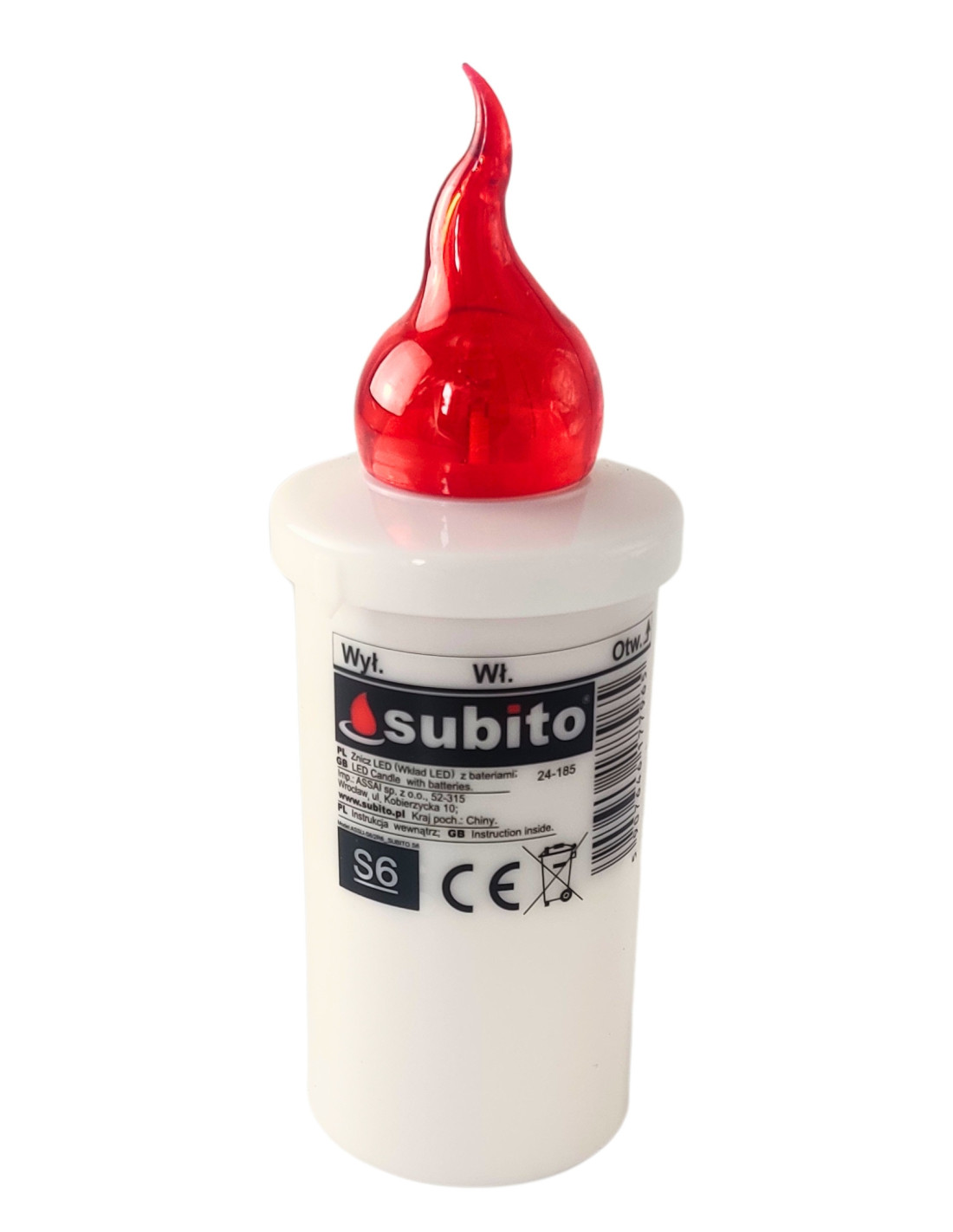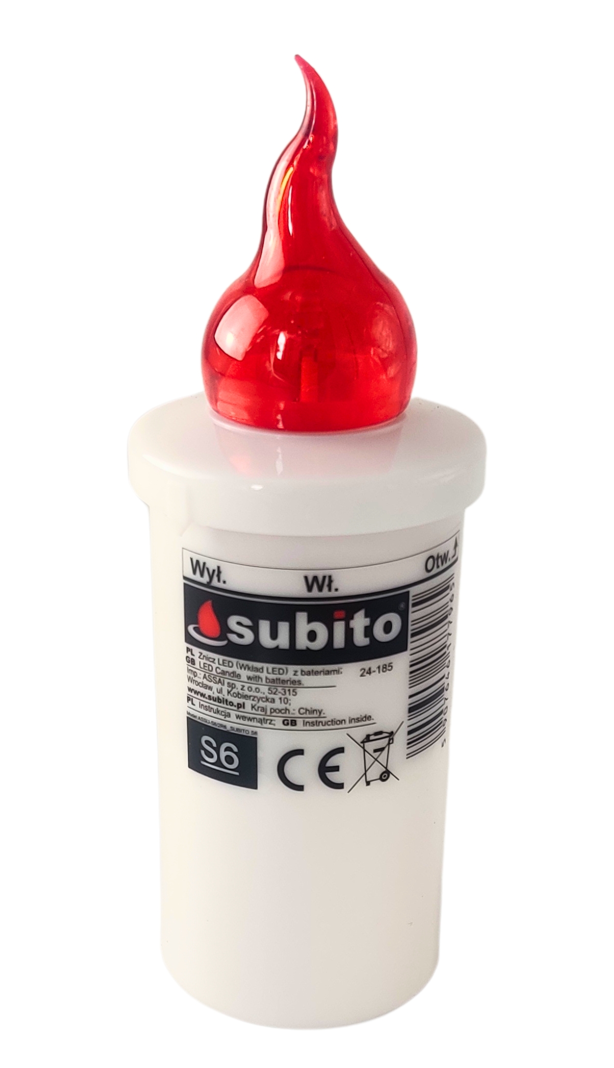 Classic LED insert for candles by Subito powered by R6 batteries. Fits most glass, plastic candles or various types of shrines and lanterns. The LED insert gives pleasant light, and the wide selection of colors allows you to create an interesting illumination.