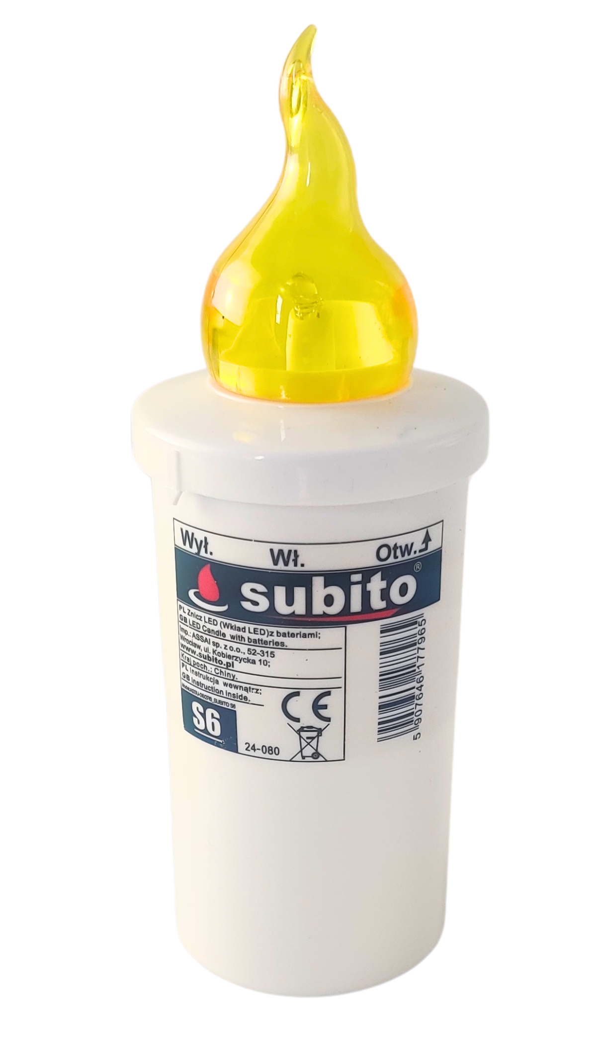 Classic LED insert for candles by Subito powered by R6 batteries. Fits most glass, plastic candles or various types of shrines and lanterns. The LED insert gives pleasant light, and the wide selection of colors allows you to create an interesting illumination.