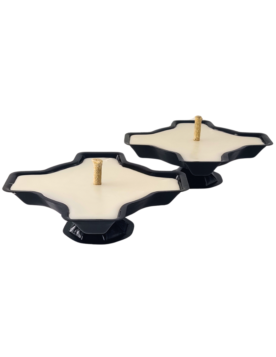 The Clover Metal Open Candle is an elegant and durable solution for decorating graves and memorials. Made of durable metal, it maintains its stability and aesthetic appeal even in harsh weather conditions. White wax and a black base give it a classic, timeless character. Thanks to its coated wick, it burns evenly for up to 10 hours.
