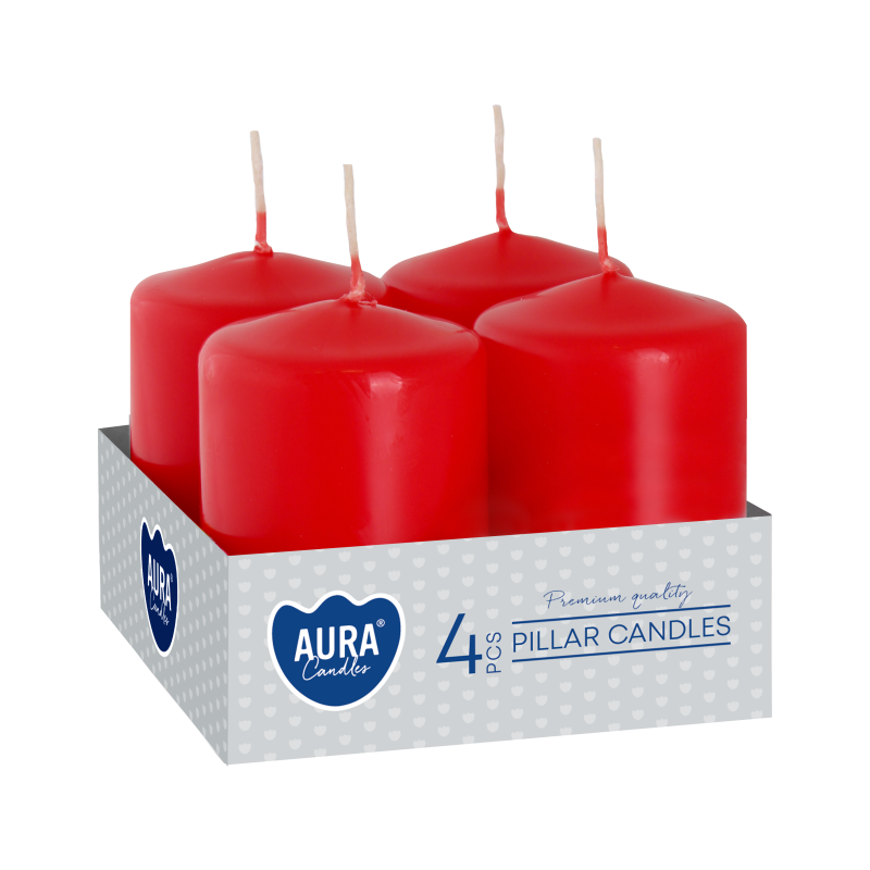 A set of four small pillar candles by AURA , in a classic red color, which will create an atmosphere full of sensuality and warmth, ideal for romantic occasions or various types of holidays. Cylinders in this color are a great choice for decorating holiday tables or creating an atmospheric atmosphere in any room. Placed in different styles, they create a cozy, loving atmosphere. Red is also the color of energy and power, which is why the candles are equally suitable for meditation, yoga and relaxation.