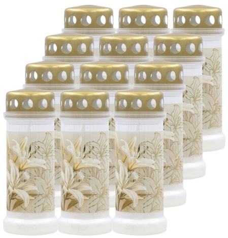 Filled plastic candles in the golden style of the BOLSIUS brand. The graphics with lilies shimmering in gold are a combination of modern design and floral, noble elegance. A solid wide base ensures stability, and thick, high-quality plastic guarantees durability and resistance to weather conditions. The metal, golden lid adds a refined character, emphasizing the elegance of the whole, and the wax without added palm oil makes the candle an ecological choice. It can be used as a stand-alone candle or as an insert for larger glass lanterns or lanterns. This is an excellent choice for people who value aesthetics, durability and deep symbolism.