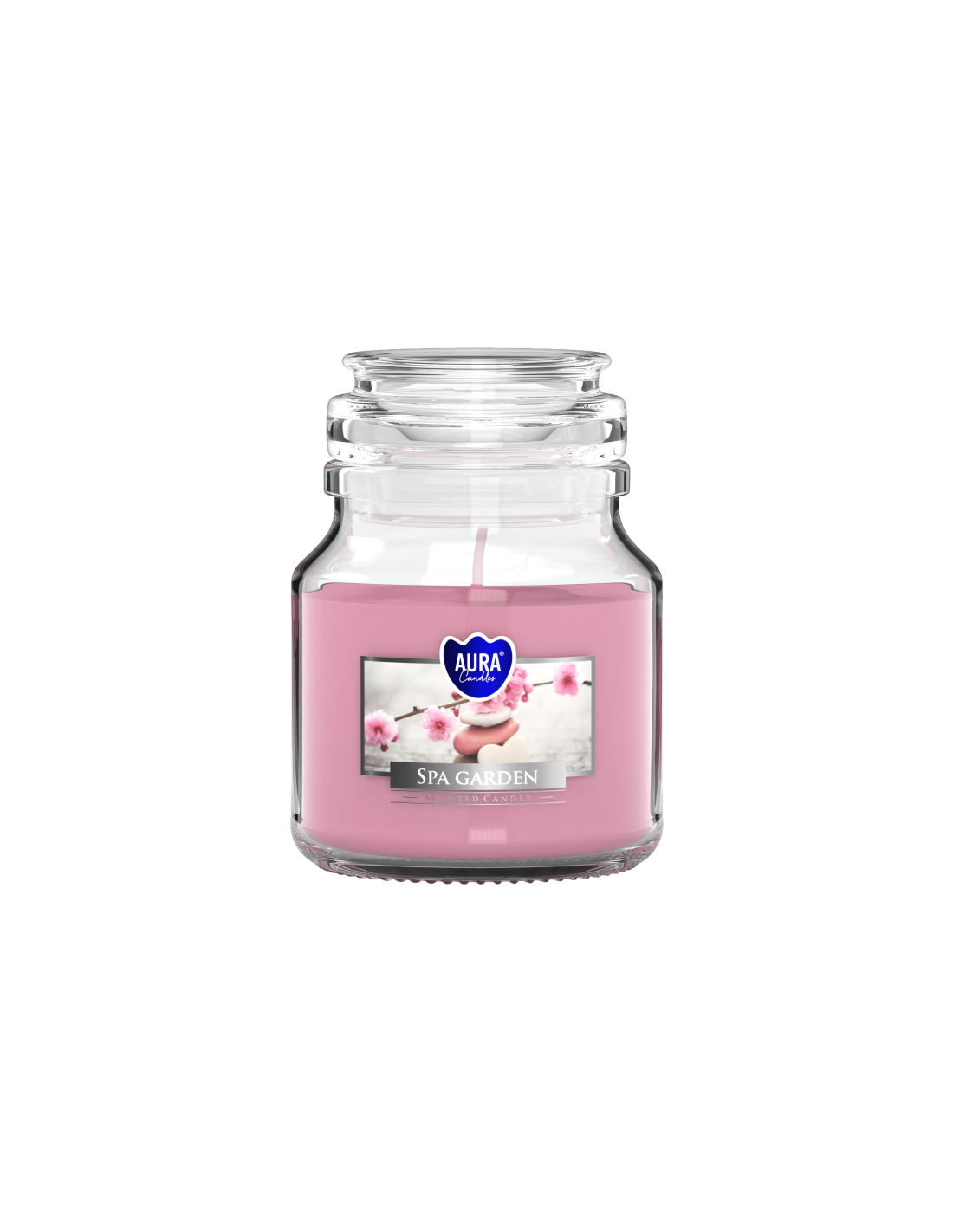 The small Garden SPA scented candle by AURA transports you to a summer garden filled with freshness and harmony, where juicy melon and apple combine with the aroma of cut grass. A floral heart of lily of the valley, rose, and cyclamen envelops the senses in delicacy and tranquility. A warm, creamy base of jasmine, coconut, and peach complements the scent, creating a relaxing, spa-inspired composition.
