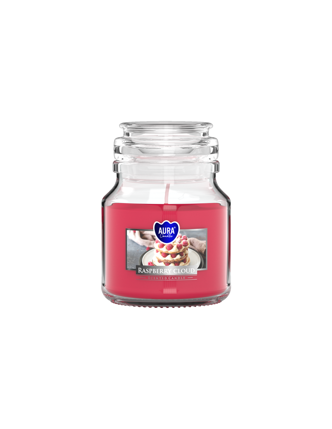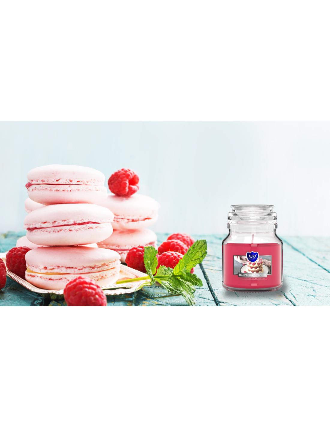 The Aura brand scented candle is a combination of sweet, fruity notes with light, fluffy freshness. Its scent is inspired by a delicious meringue cake with raspberries, and the aroma is associated with a joyful, sweet and light mood that fills the space with a "soft, fruity cloud".