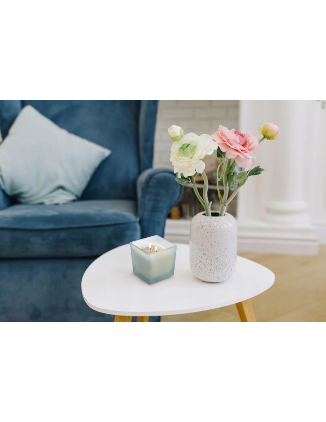 A small scented candle in a square glass with a burn time of up to 26 hours. Two cotton wicks ensure even burning of the wax and enhance the candle's glow. The decorative graphics on the packaging make this candle an ideal gift for various occasions.