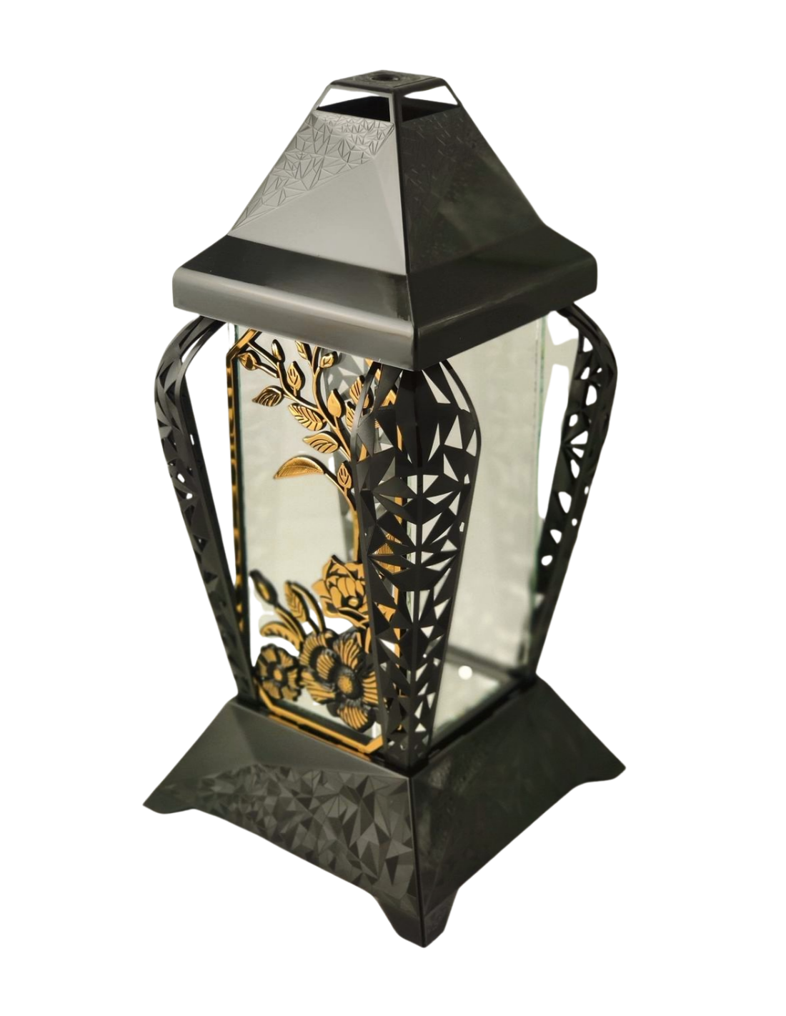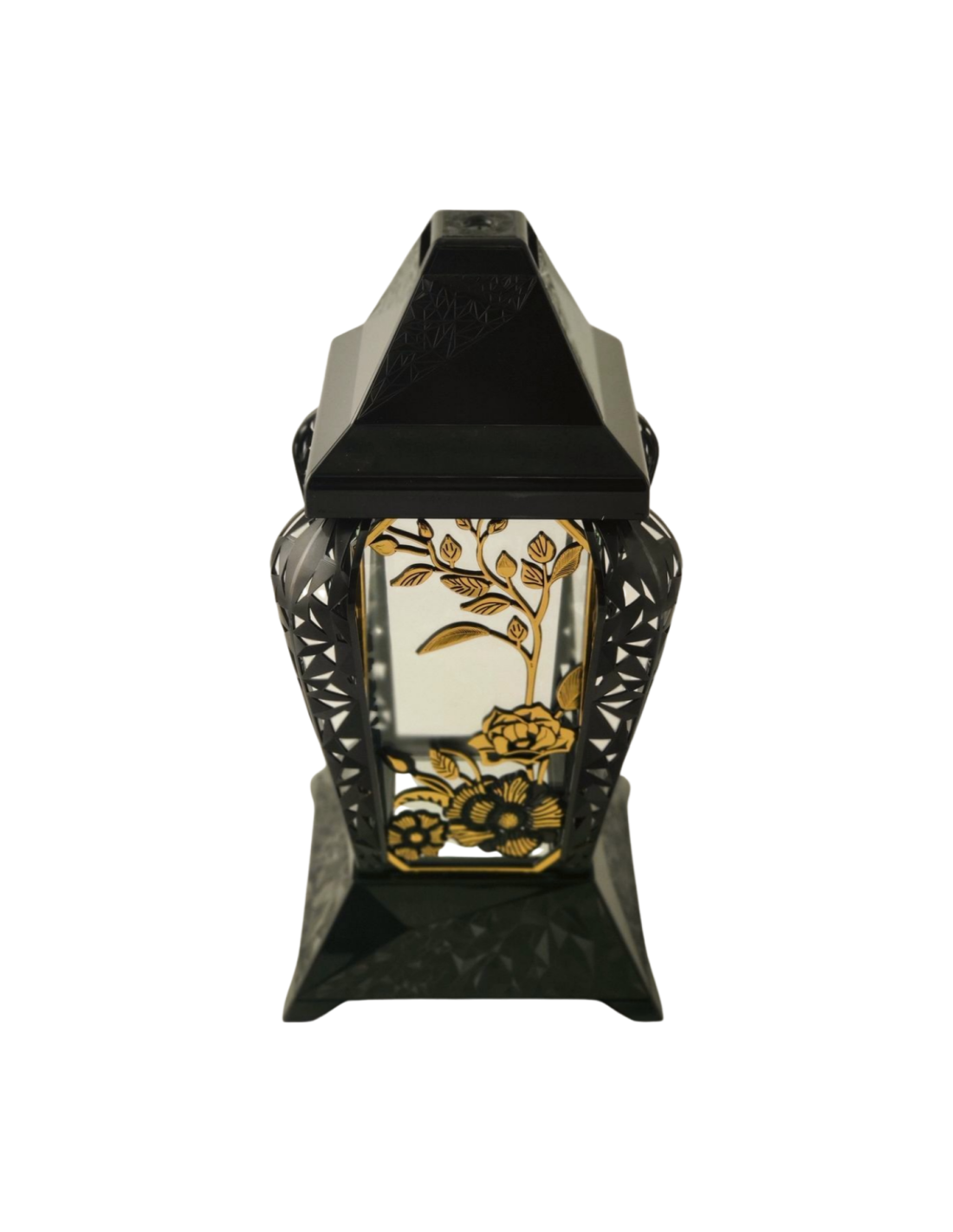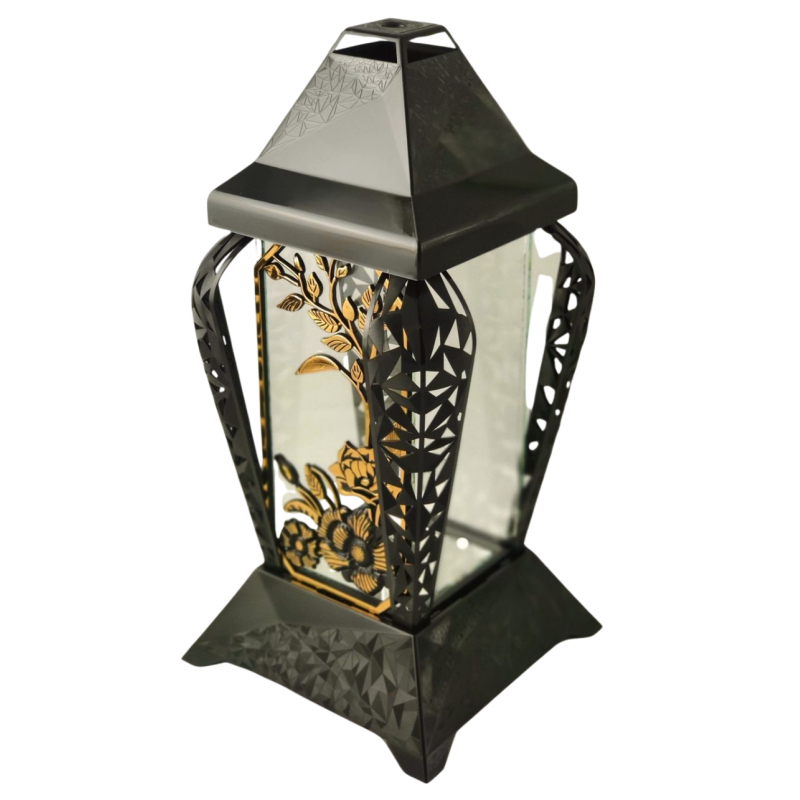 Znicz kapliczka INVERSO duży kwiaty czarny/złoto 37cm