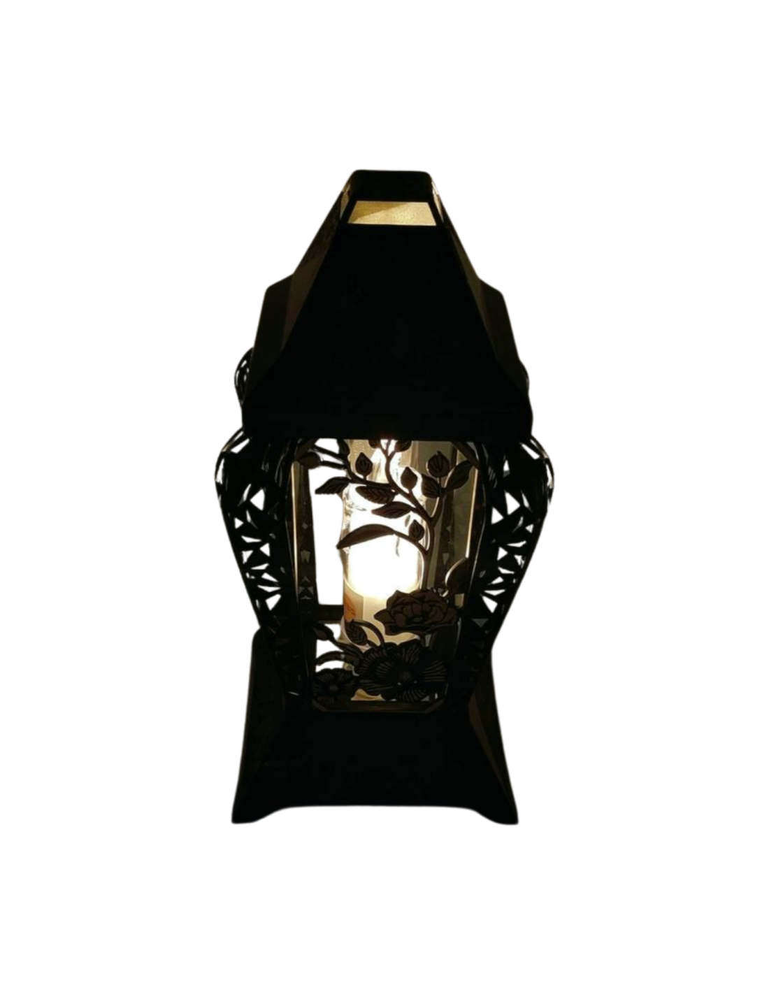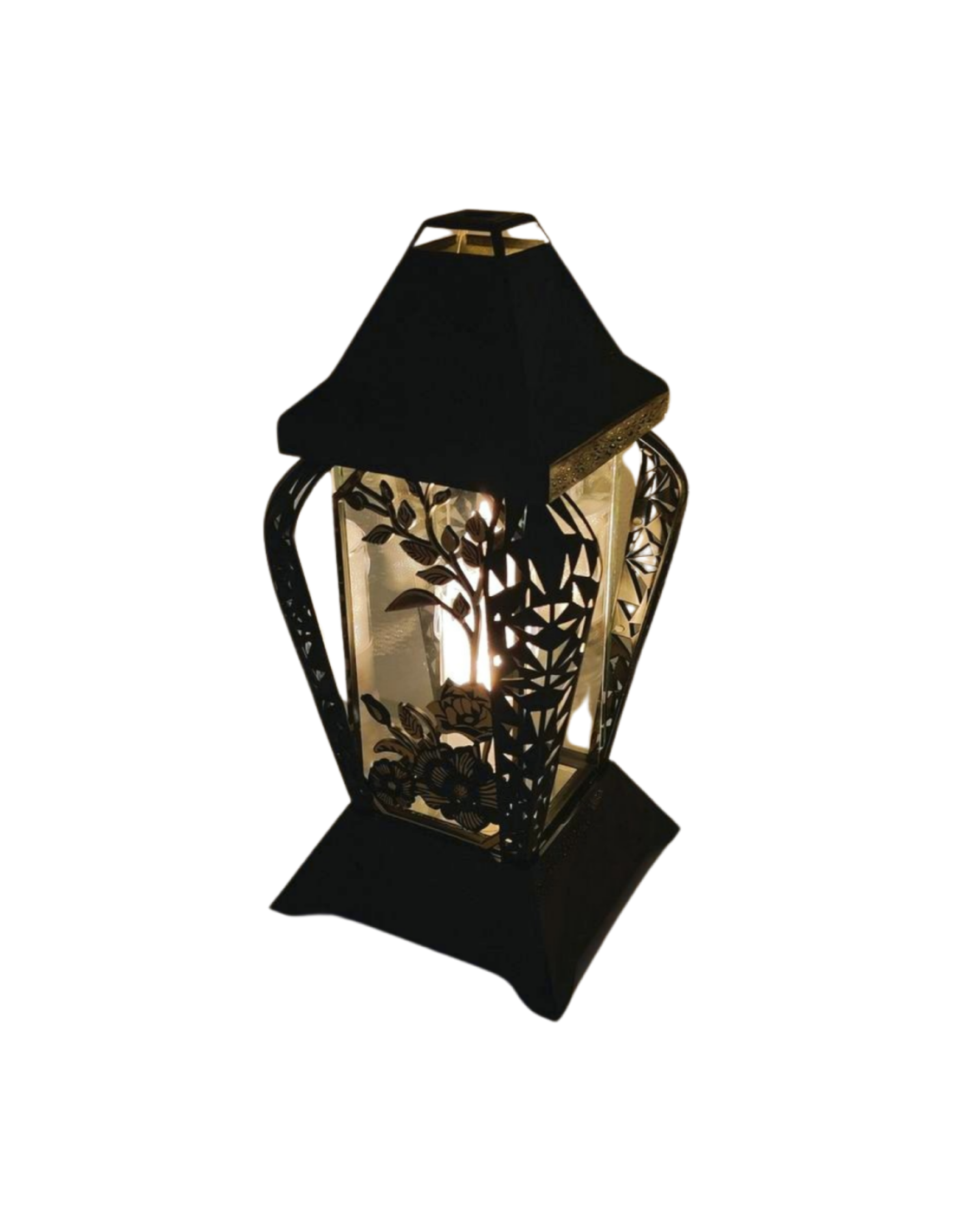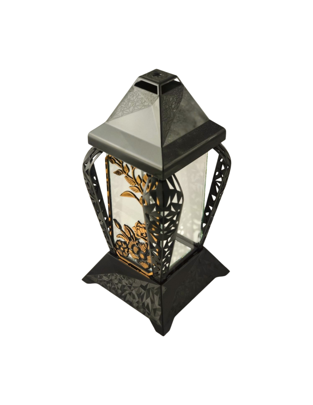Znicz kapliczka INVERSO duży kwiaty czarny/złoto 37cm