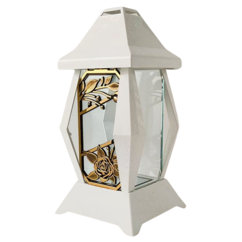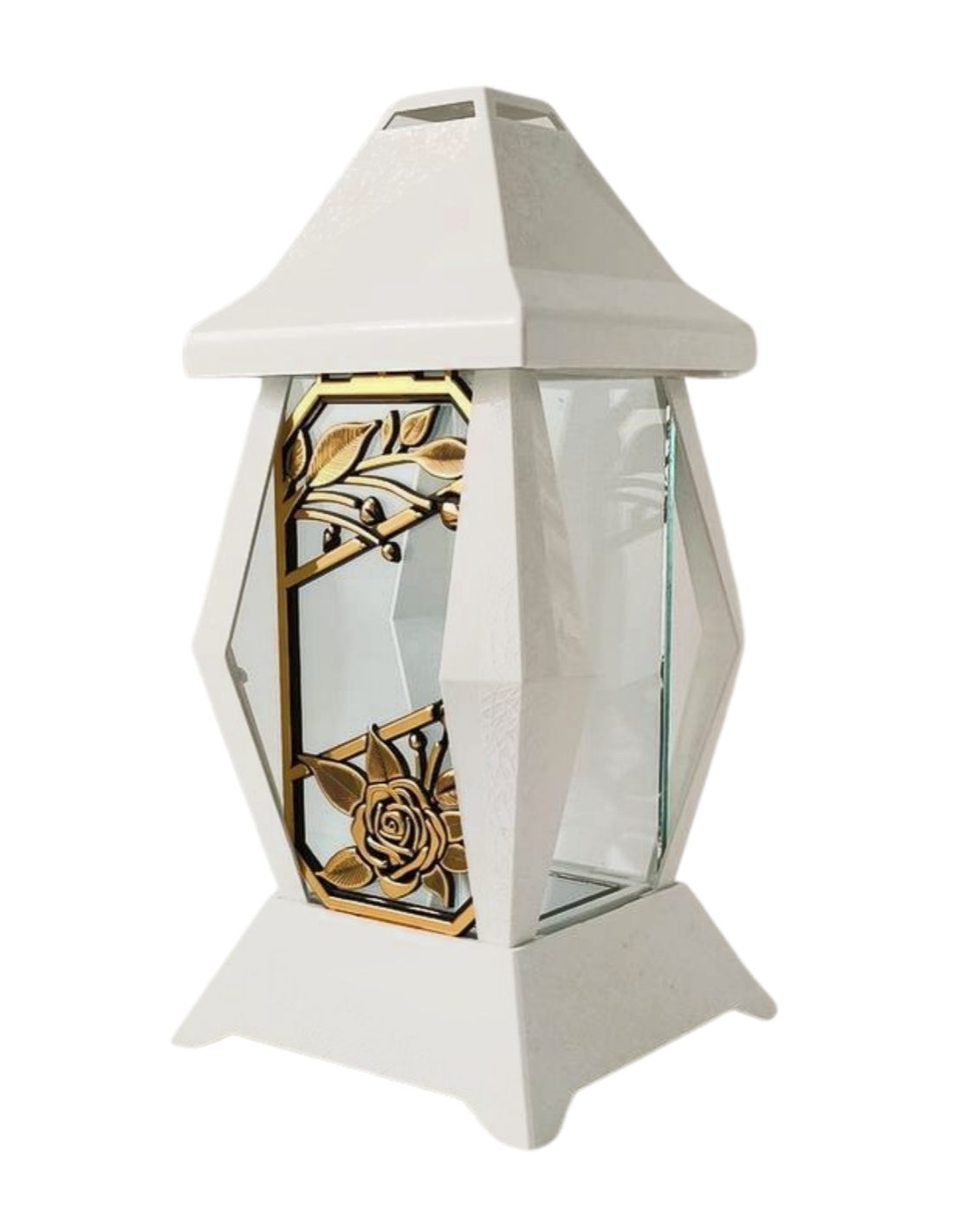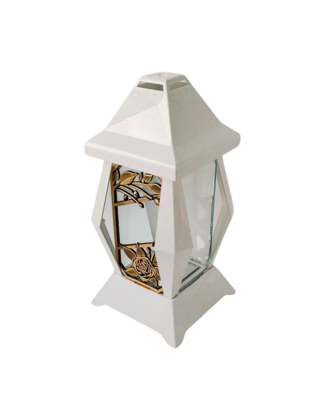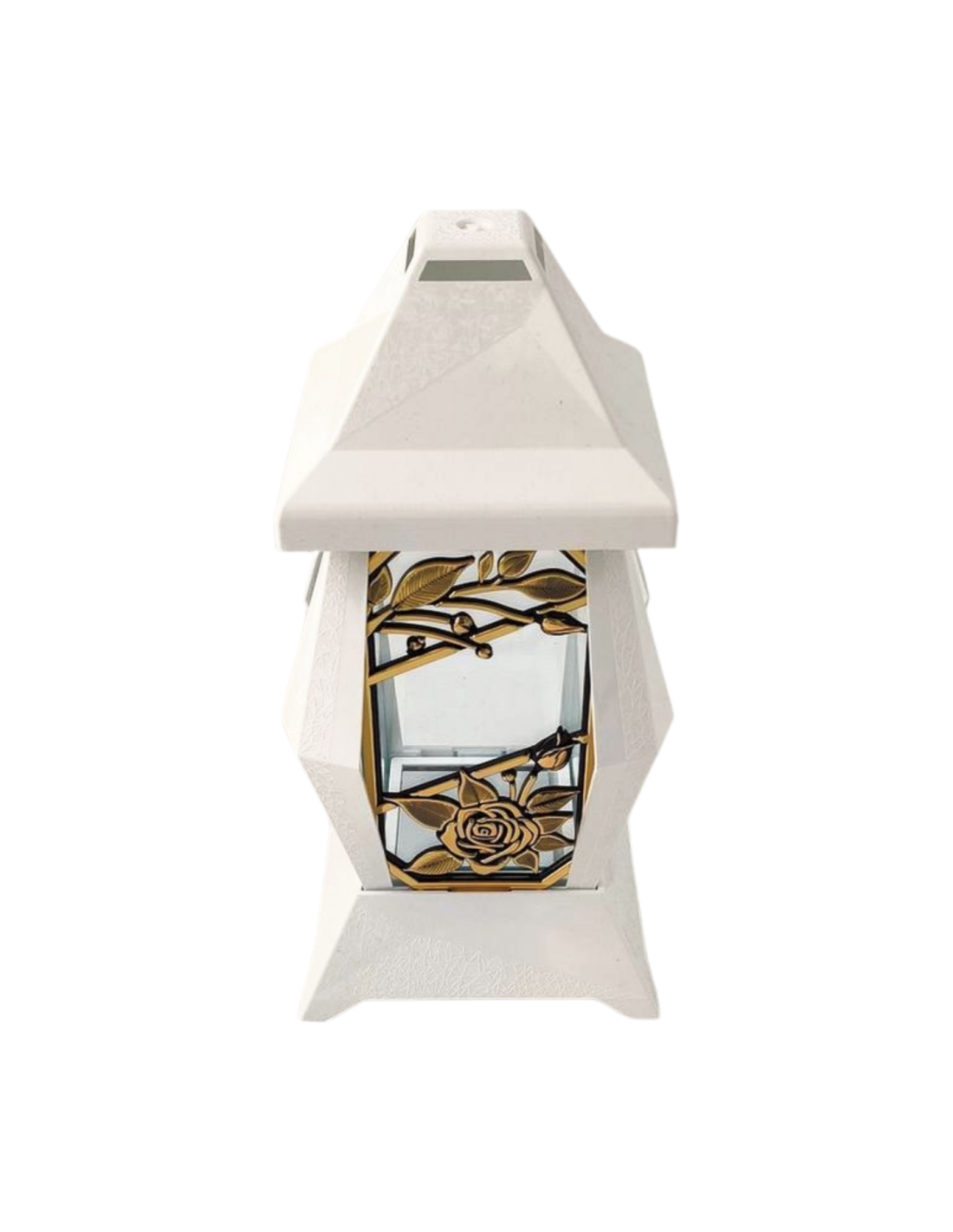 Znicz kapliczka VERSO mały kwiaty biały/złoto 30cm