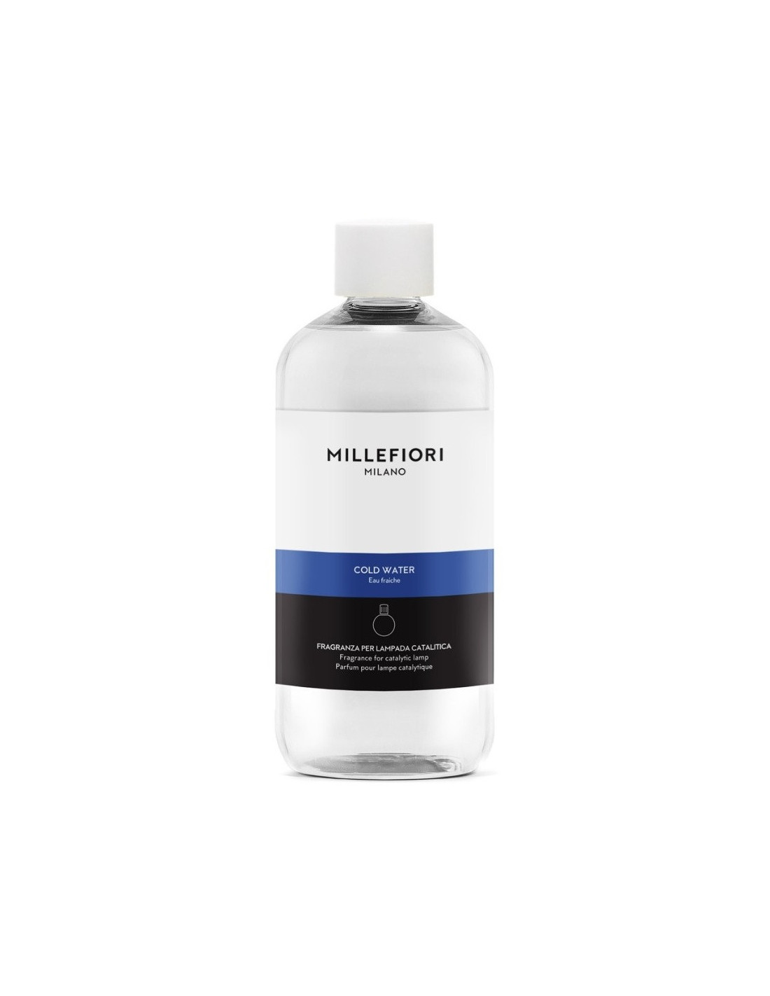 Uzupełniacz do lampy katalitycznej marki Millefiori MILANO o zapachu COLD WATER. Butelka z olejkiem przeznaczonym specjalnie do lamp katalitycznych. Świeże nuty drzewa sandałowego, rozmarynu, cytryny i bergamotki.