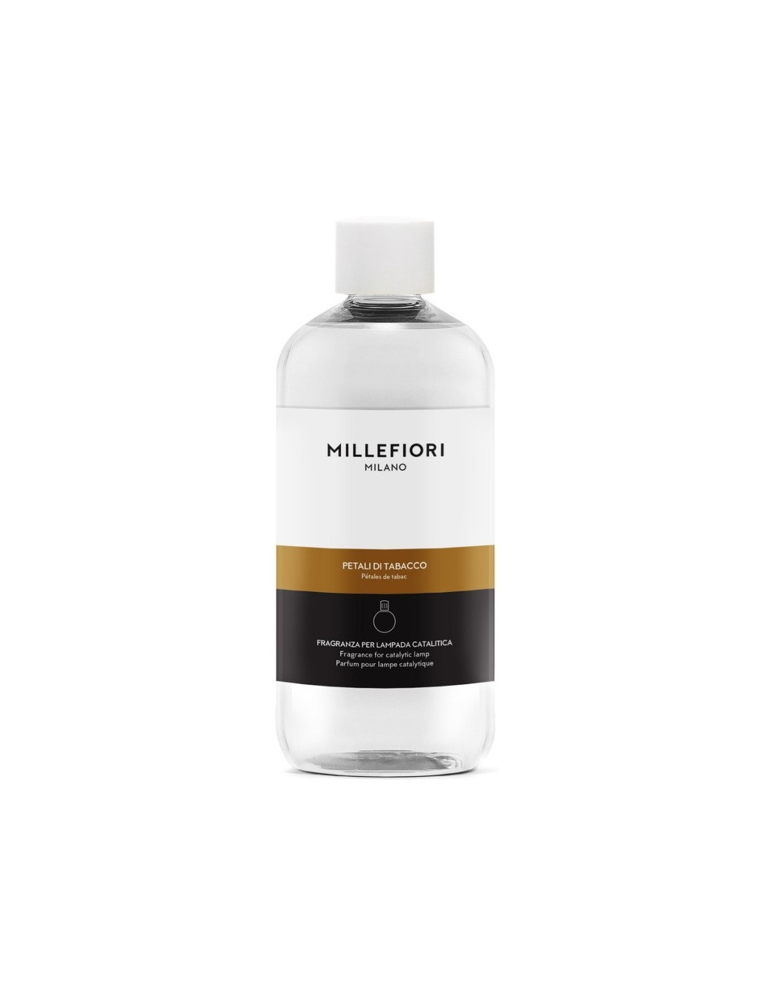 Uzupełniacz do lampy katalitycznej marki Millefiori MILANO o zapachu PETALI DI TABACCO. Butelka z olejkiem przeznaczonym specjalnie do lamp katalitycznych. Głęboki aromat tytoniu łączy się z kremową nutą wanilii i kakao.