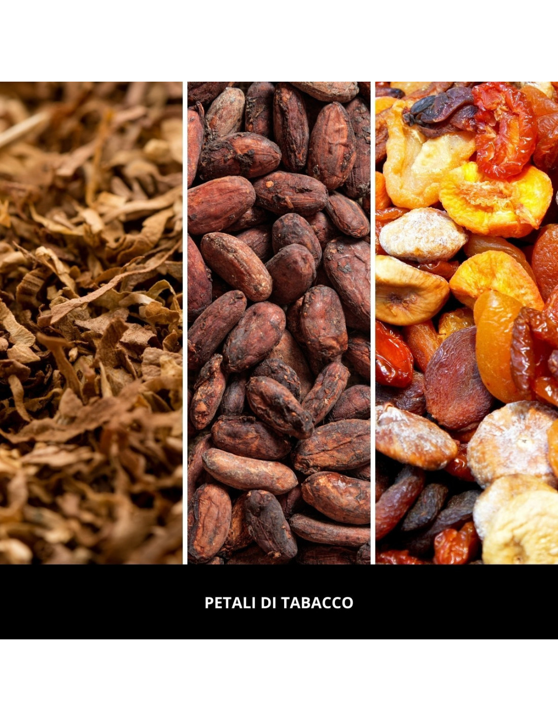 Olejek zapachowy Petali di Tabacco to głęboka i otulająca kompozycja, w której szlachetny liść tytoniu i aromatyczne przyprawy otwierają zmysłową podróż. Serce zapachu wypełniają kremowa wanilia, aksamitne kakao i kwiat tytoniu, wzbogacone nutą fasoli Tonka. Całość spowita jest ciepłem suszonych owoców i szlachetnych akordów drzewnych, tworząc elegancki, nieco orientalny aromat.