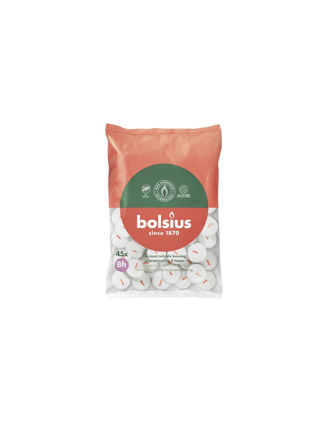 Podgrzewacze bezzapachowe marki BOLSIUS, wykonane z naturalnego wosku roślinnego, bez dodatku oleju palmowego czy tłuszczu zwierzęcego, dzięki czemu są bardziej przyjazne dla środowiska i zdrowia. Bezzapachowa formuła zapewnia, że nie wprowadzają one żadnych niepożądanych zapachów, co sprawia, że są idealne w przypadku, gdy ważna jest neutralność aromatyczna.