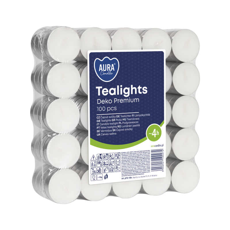 It is hard to imagine a formal dinner without a candle flame. Tealights allow you to create a unique atmosphere in any room. They are available in various forms of packaging, on which the burning time is communicated. They offer many benefits: the highest quality, beautiful flame, stable combustion, burning to the end. Odorless tealights in a metal casing. Their minimalist form allows you to create many interesting arrangements. They are ideal for scented fireplaces.