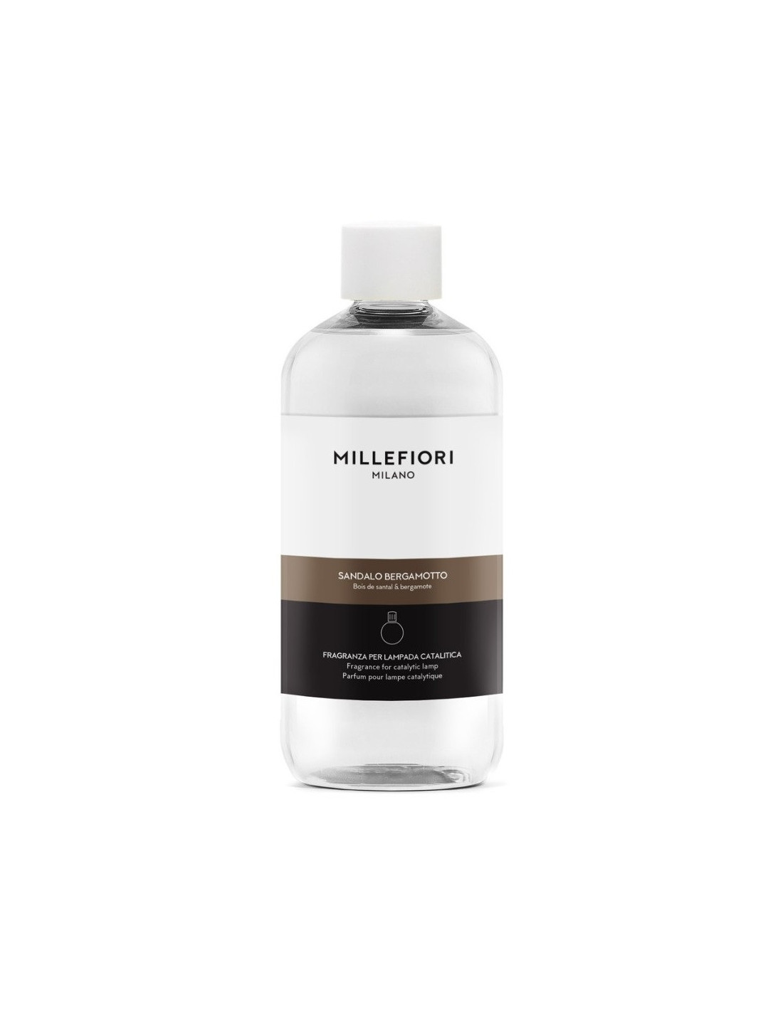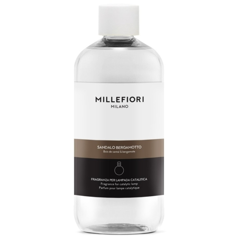 Náplň do katalytickej lampy Millefiori MILANO s vôňou SANDALO BERGAMOTTO. Fľaša oleja určená špeciálne pre katalytické lampy. Drevitá vôňa santalového dreva v kombinácii s nádychom citrusov a levandule.