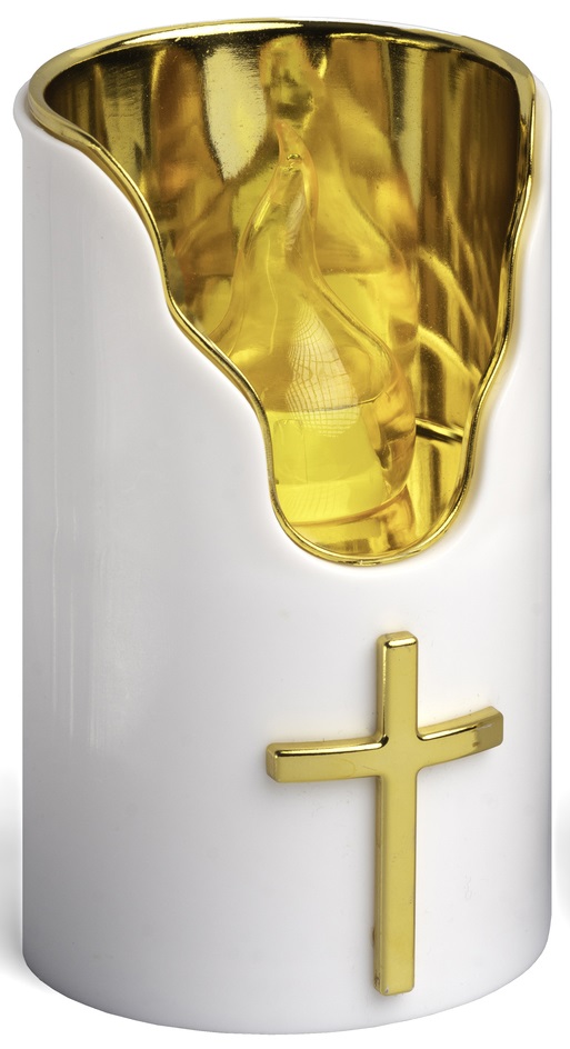 Dekoratívna sviečka na batérie. Vhodné pre väčšinu sklenených alebo plastových sviečok. Poskytuje príjemné svetlo a široký výber farieb umožňuje vytvoriť zaujímavé osvetlenie. Zlaté doplnky mu dodávajú exkluzívny vzhľad.