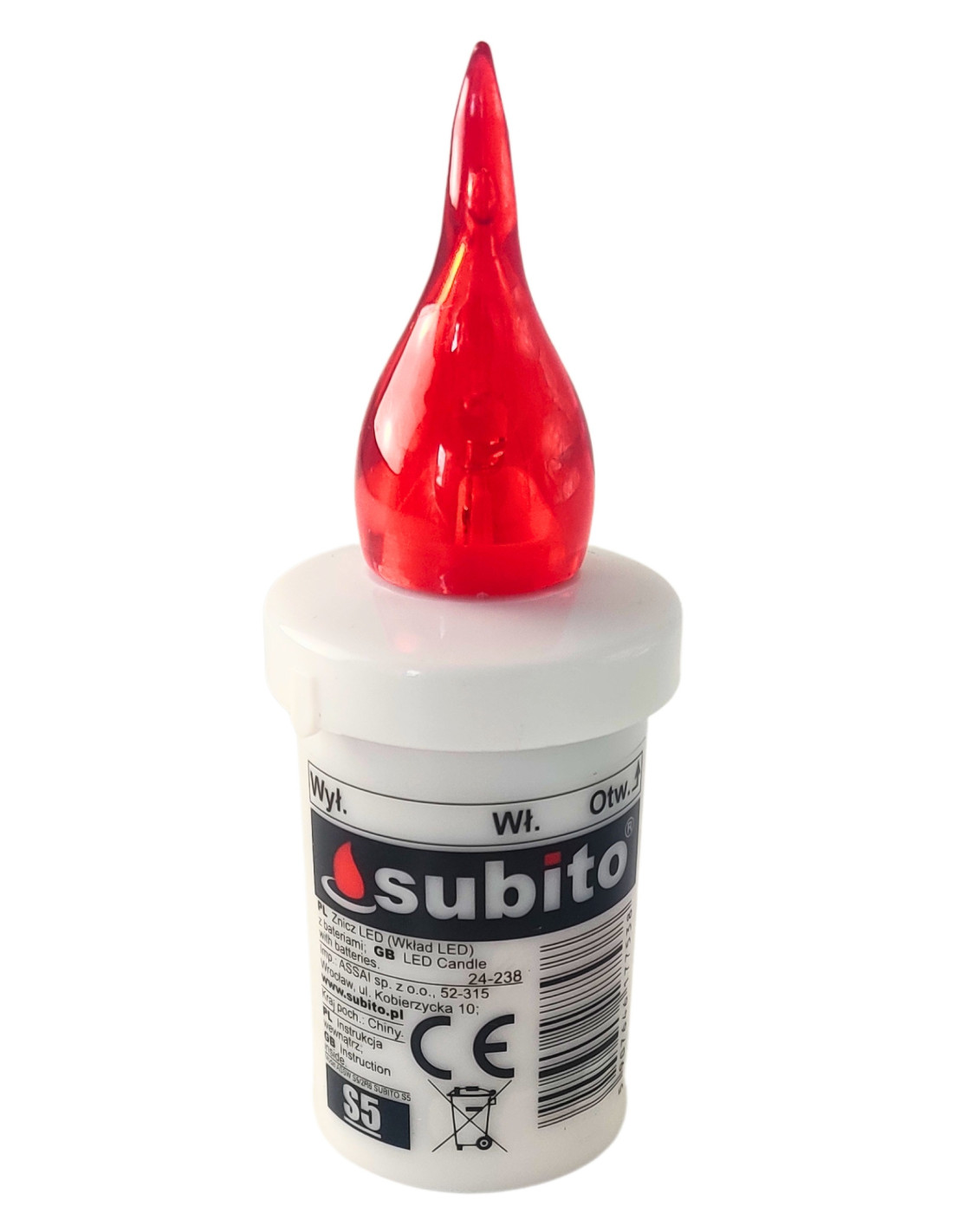 Klasická LED vložka do sviečok Subito , napájaná batériami R6. Vhodné pre väčšinu sklenených a plastových sviečok alebo rôzne typy svätyní a lampášov. LED vložka poskytuje príjemné svetlo a široká škála farieb umožňuje vytvoriť zaujímavé osvetlenie.