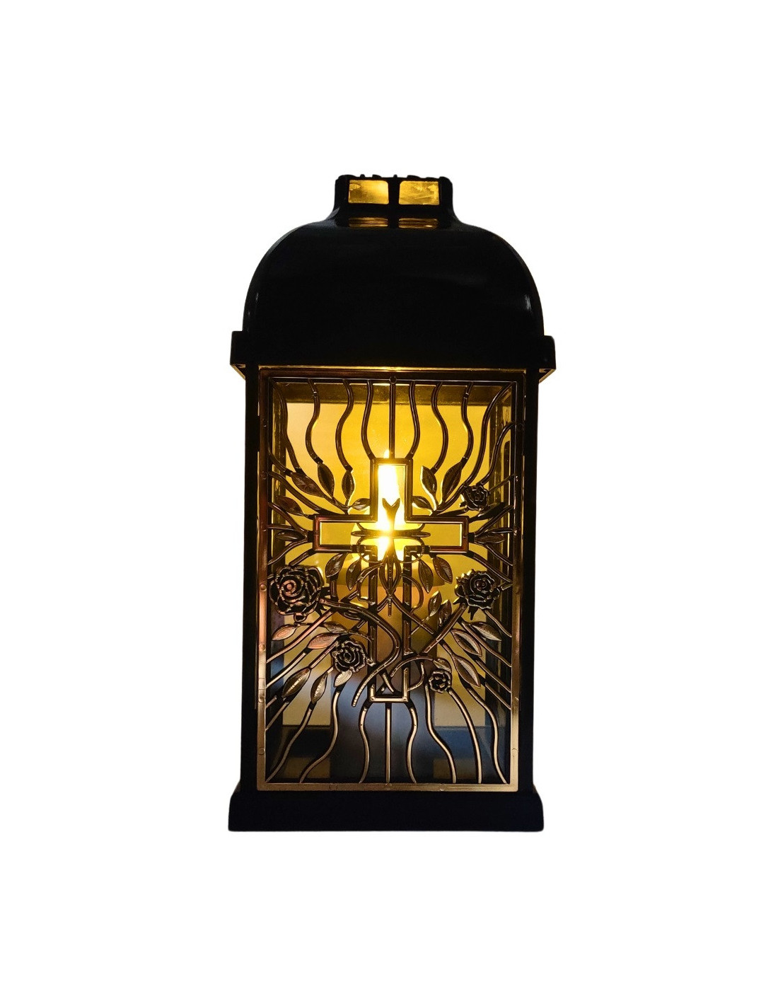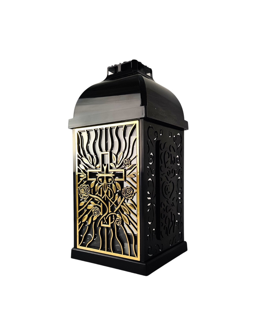 FERMO kaplnková sviečka malá prelamovaná ruža-kríž čierna/zlatá 29 cm