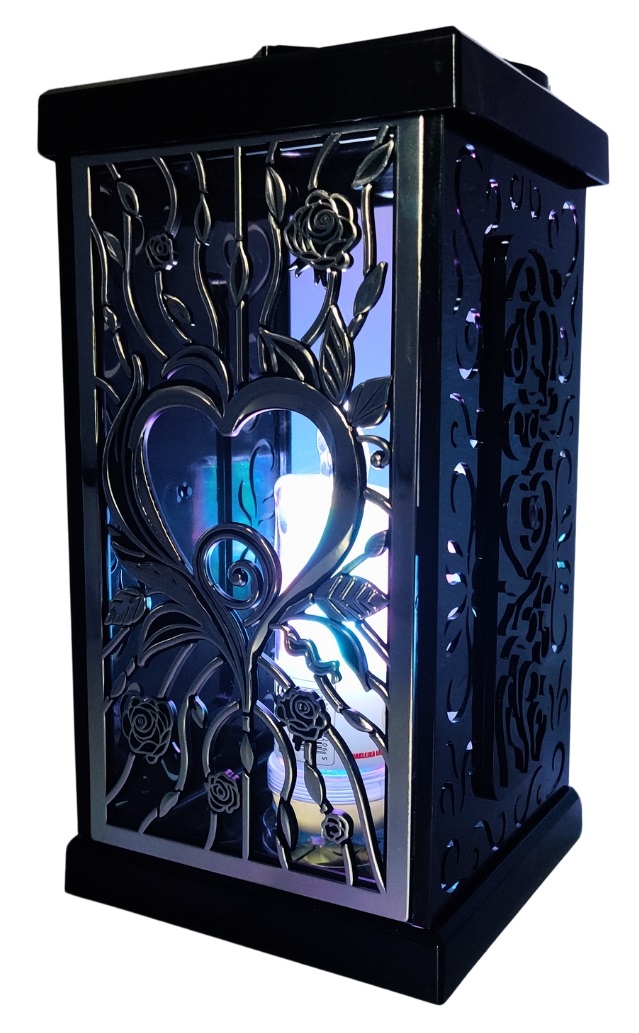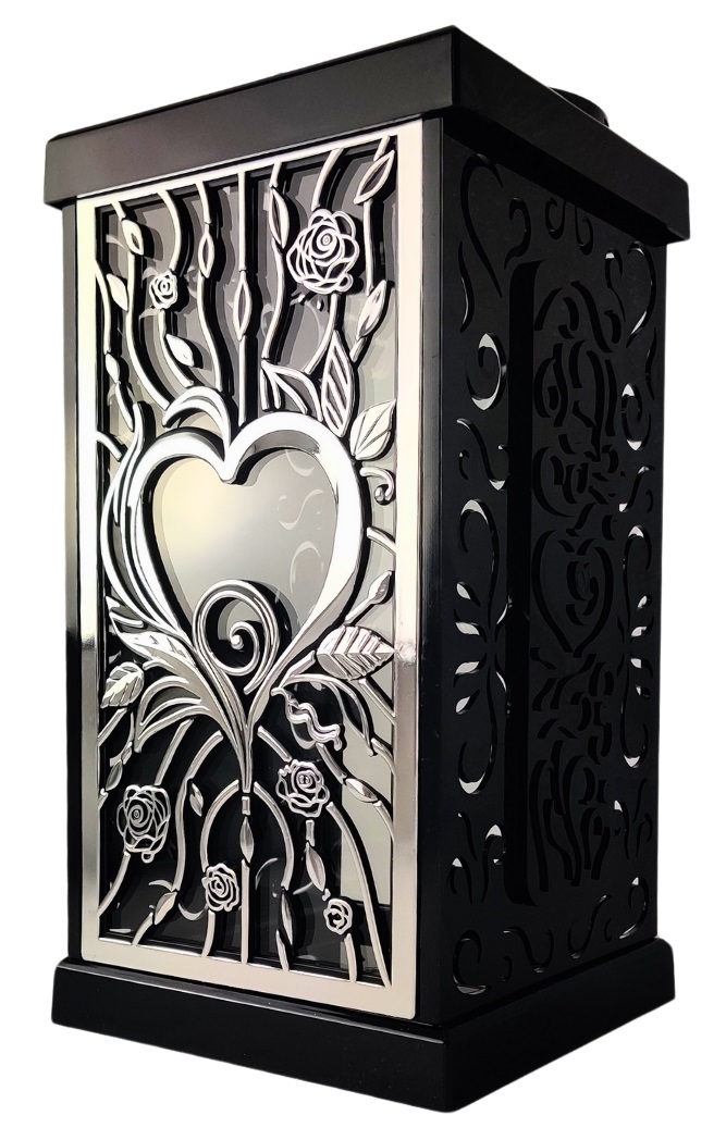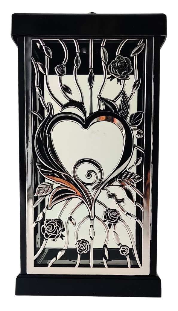 FERMO kaplnková sviečka veľká prelamovaná ruža-srdce čierna/strieborná 30 cm