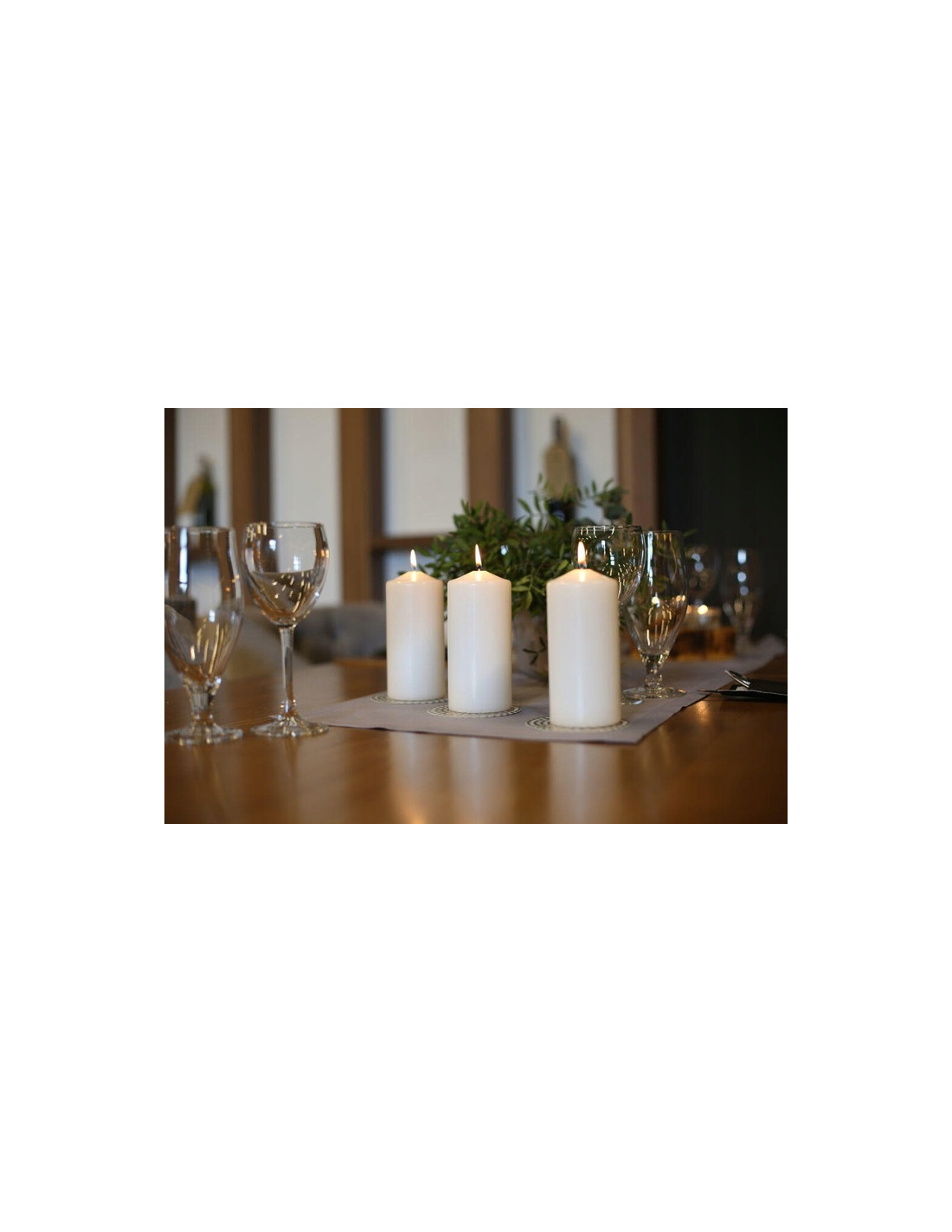 Stĺpová sviečka AURA v elegantnej ecru farbe je perfektnou voľbou pre vytvorenie teplej a útulnej atmosféry v každom interiéri. Jemný, prírodný ecru odtieň z nej robí perfektný doplnok k rôznym aranžmánom. Táto stĺpová sviečka v tejto farbe je nádhernou dekoráciou stola a poskytuje perfektné prostredie pre recepcie, bankety, svadby alebo slávnostné večere. Táto ecru sviečka prináša pocit pokoja, harmónie a relaxácie do obývačky, spálne alebo kúpeľne. Je to nadčasová a decentná voľba na sviatky, výročia a iné špeciálne príležitosti.