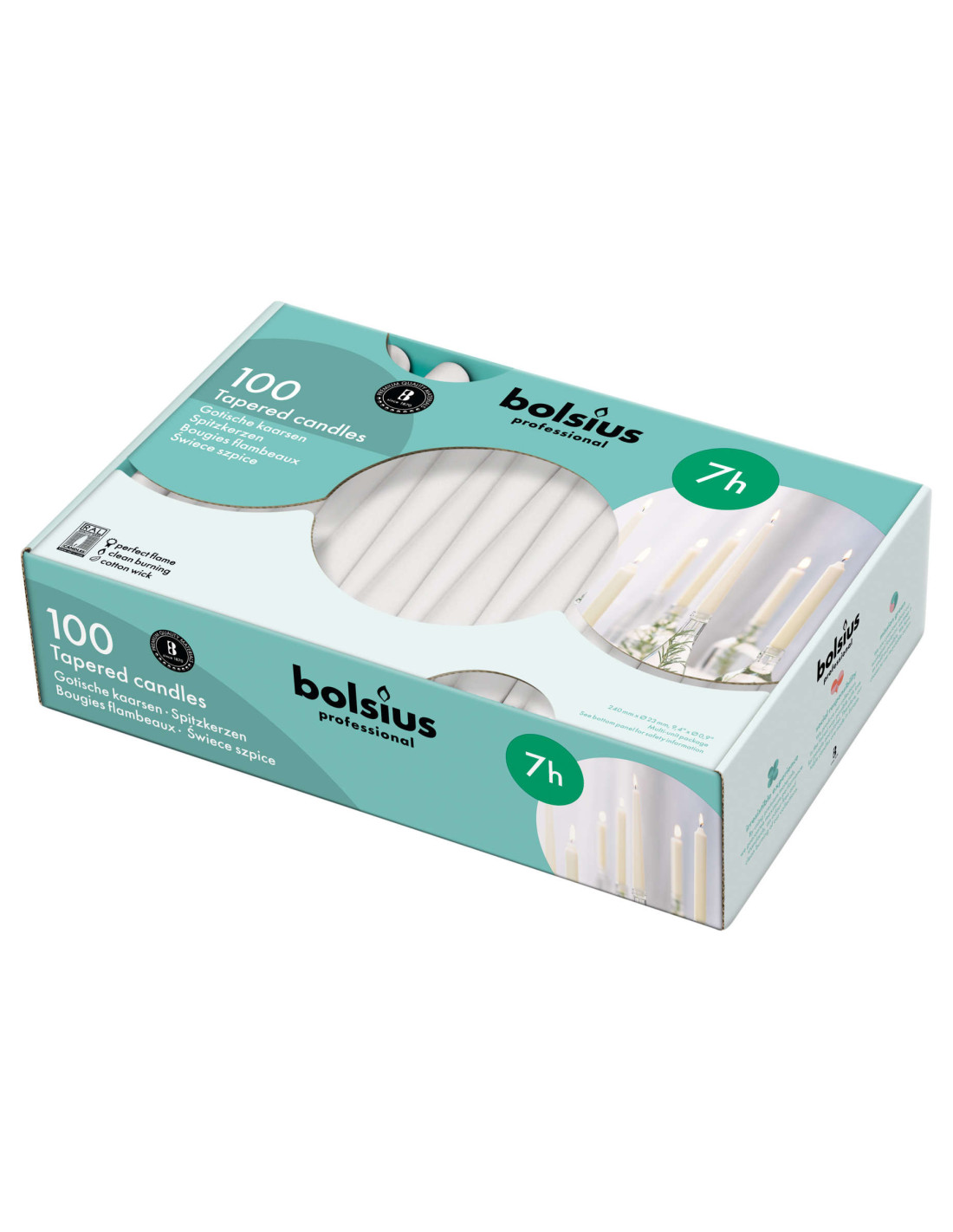 Stolové sviečky Bolsius vám umožnia vytvoriť jedinečnú atmosféru v každej miestnosti. Sviečky Bolsius sú dostupné v rôznych formách balenia, na ktorých je uvedená doba horenia. Zabezpečujú najvyššiu kvalitu, krásny plameň, stabilné horenie a vypaľovanie až do konca.