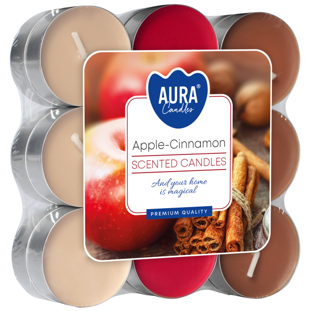 Voňavé ohrievače značky Aura s teplou a chutnou vôňou jablka a škorice, ktorá pripomína čerstvo upečený, lahodný jablkový koláč. Táto vôňa zahalí interiér šťavnatou, ovocnou sviežosťou a prídavok teplého korenia dodáva expresivitu, púta pozornosť svojou intenzitou a sladkosťou. Celok vytvára harmonickú a útulnú atmosféru.
