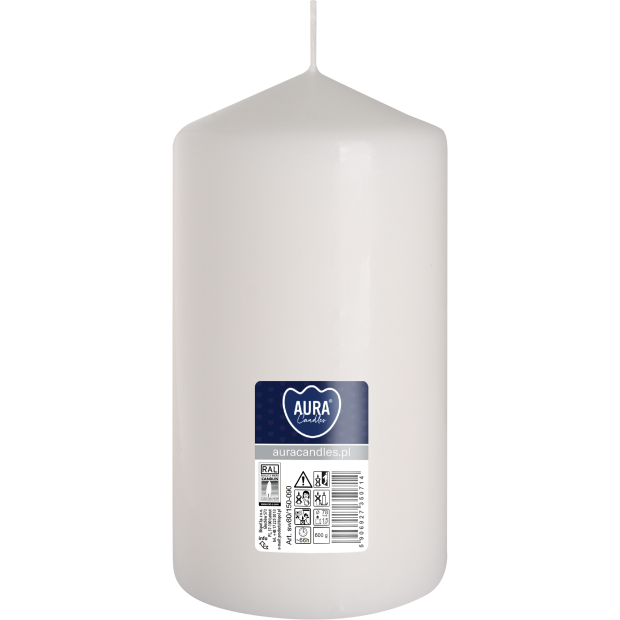 Stumpenkerze von AURA in klassischer weißer Farbe, die in jedem Interieur eine gemütliche Atmosphäre schafft. Ein Zylinder in dieser Farbe ist eine ausgezeichnete Wahl für die Dekoration jedes Tisches, da er eine ideale Option für Empfänge, Bankette, Hochzeiten oder Abendessen darstellt. Eine weiße Kerze bringt Ruhe, Harmonie und eine entspannte Atmosphäre ins Wohnzimmer, Schlafzimmer oder Badezimmer. Es ist eine zeitlose Wahl für Feiertage, Jubiläen oder andere besondere Momente.
