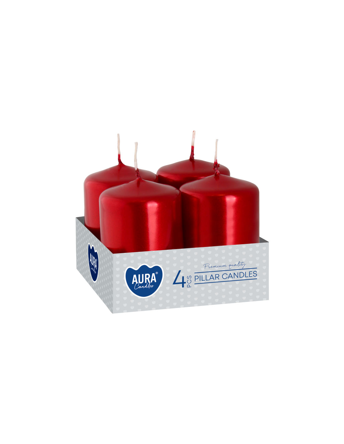 Zestaw czterech małych świec pieńkowych marki AURA w eleganckim, czerwonym metalicznym kolorze, który nadaje wnętrzu wyjątkowy, wyrazisty charakter. Walce w tej barwie to doskonały wybór na dekorację dowolnego stołu, idealne na przyjęcia, bankiety, wesela czy kolacje. Czerwone świece wprowadzają ciepło, pasję i energetyczną atmosferę w salonie, sypialni czy łazience. To ponadczasowy wybór na święta, rocznice czy inne szczególne momenty, które warto uczcić w wyjątkowy sposób.